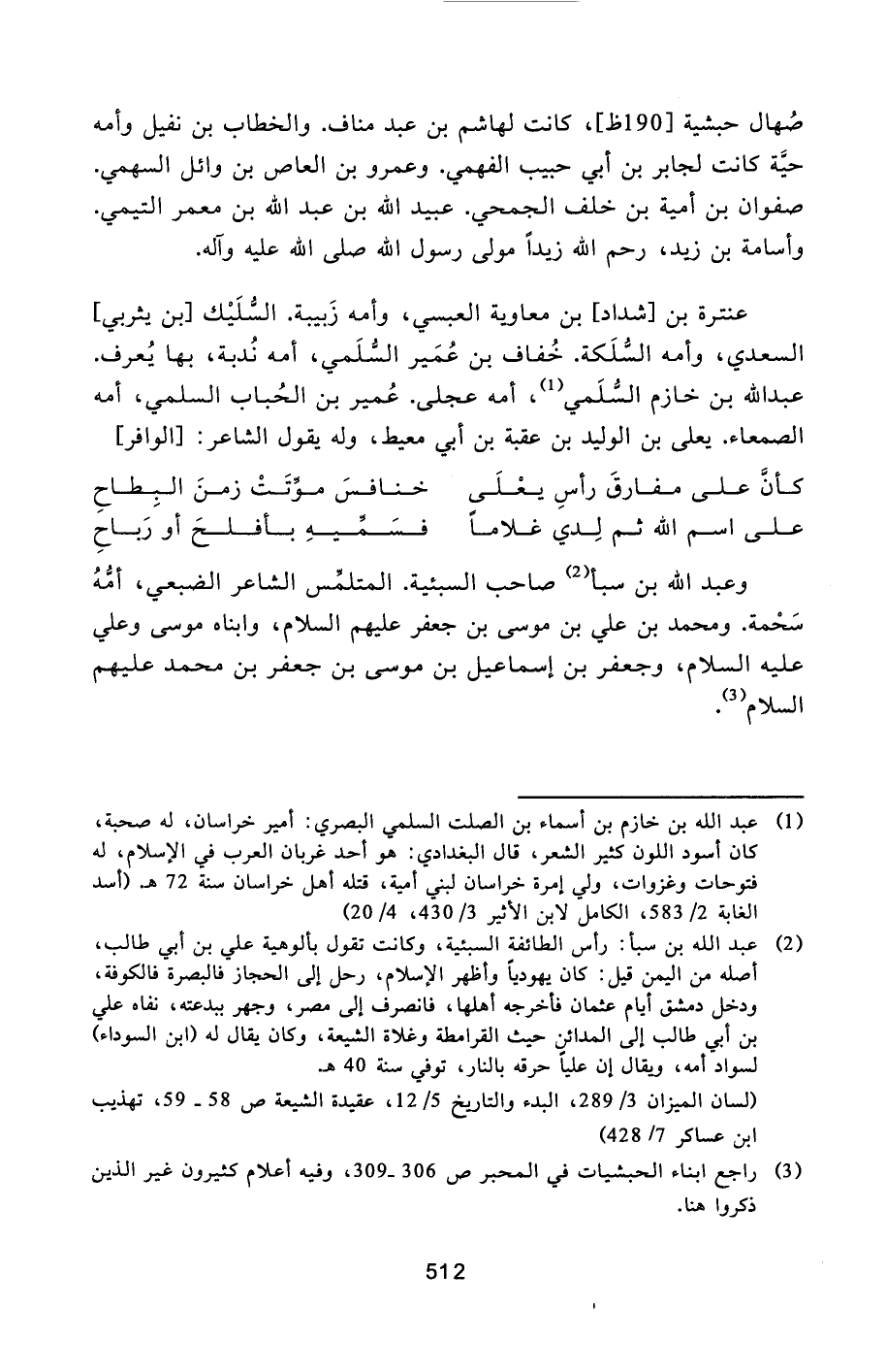 [3] راجع ابناء الحبشيات في المحبر ص 306- 309، وفيه أعلام كثيرون غير الذين ذكروا هنا.