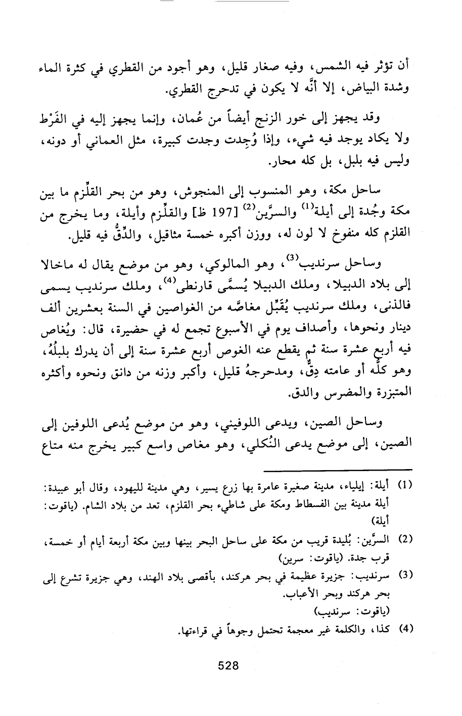 [3] سرنديب: جزيرة عظيمة في بحر هركند، بأقصى بلاد الهند، وهي جزيرة تشرع إلى بحر هركند وبحر الأعباب.