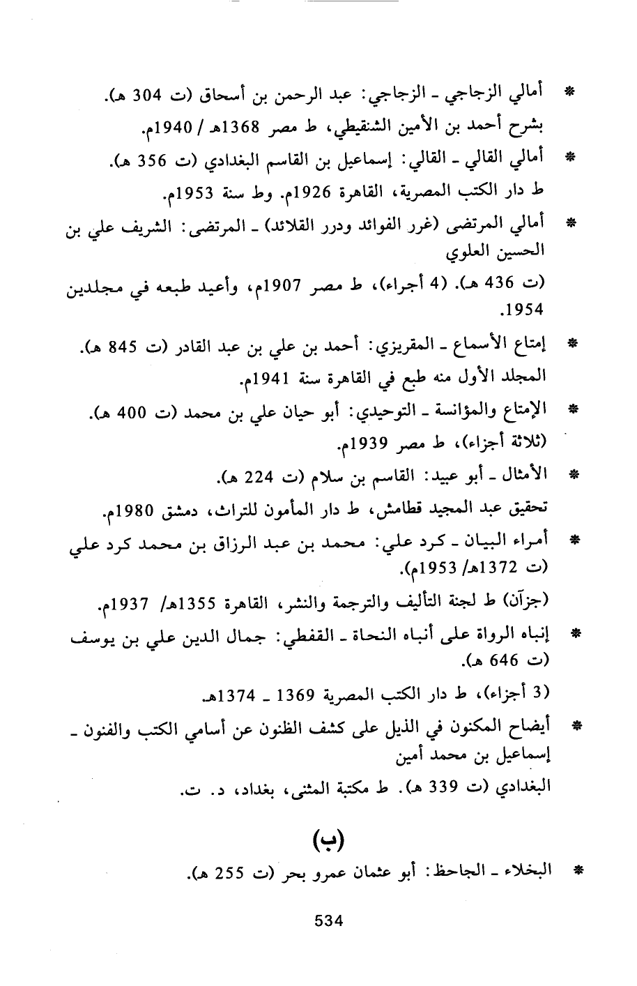أمالي المرتضى (غرر الفوائد ودرر القلائد) - المرتضى: الشريف علي بن الحسين العلوي (ت 436 هـ) . (4 أجراء) ، ط مصر 1907 م، وأعيد طبعه في مجلدين 1954.