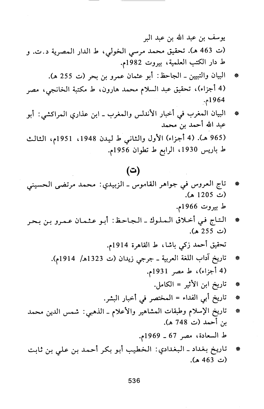 البيان المغرب في أخبار الأندلس والمغرب- ابن عذاري المراكشي: أبو عبد الله أحمد بن محمد (965 هـ) . (4 أجزاء) الأول والثاني ط ليدن 1948، 1951 م، الثالث ط باريس 1930، الرابع ط تطوان 1956 م.