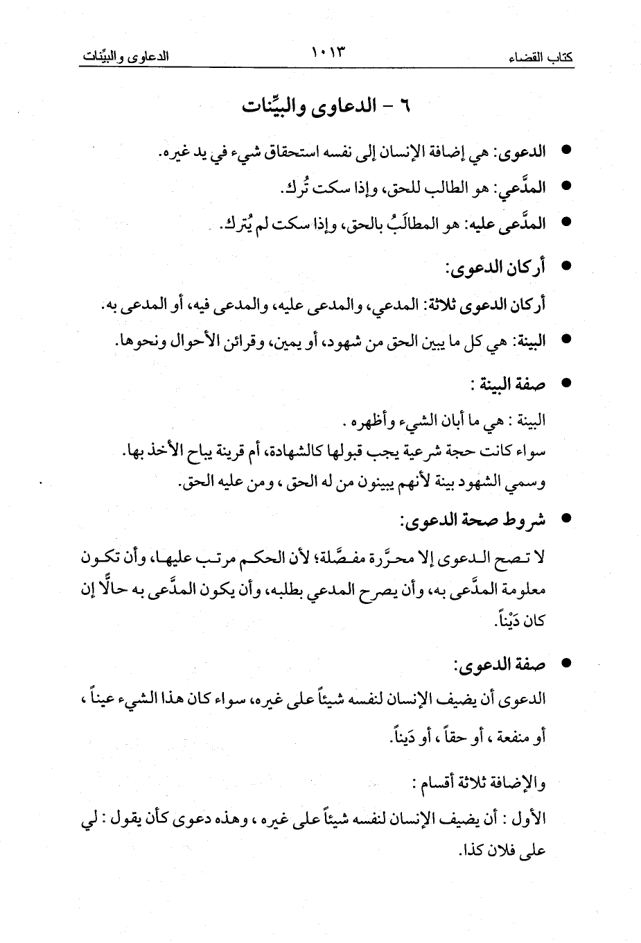 - الدعوى: هي إضافة الإنسان إلى نفسه استحقاق شيء في يد غيره.