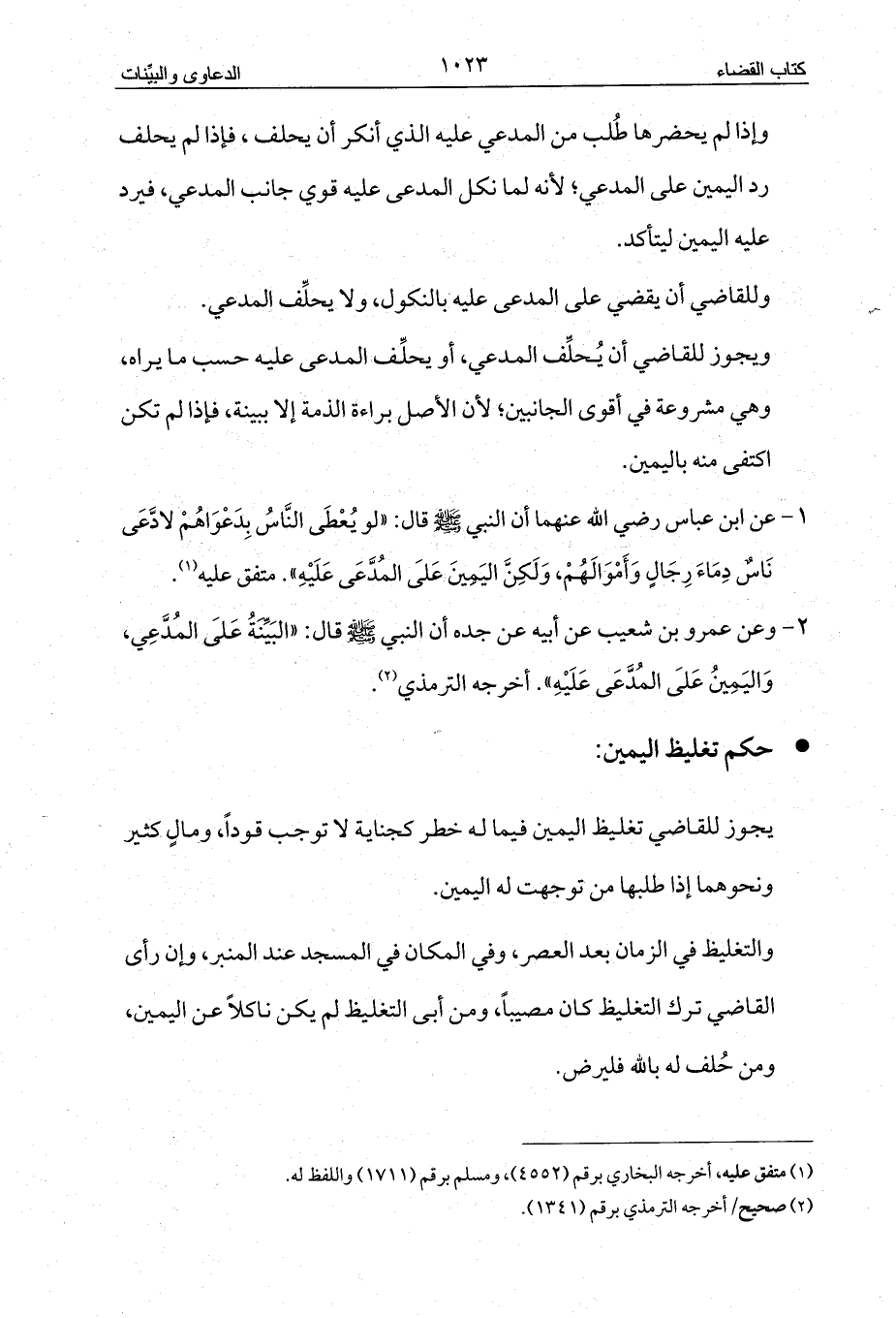 1 - عن ابن عباس رضي الله عنهما أن النبي - صلى الله عليه وسلم - قال: «لو يُعْطَى النَّاسُ بِدَعْوَاهُمْ لادَّعَى نَاسٌ دِمَاءَ رِجَالٍ وَأَمْوَالَهُمْ، وَلَكِنَّ اليَمِينَ عَلَى المُدَّعَى عَلَيْهِ». متفق عليه (¬1).