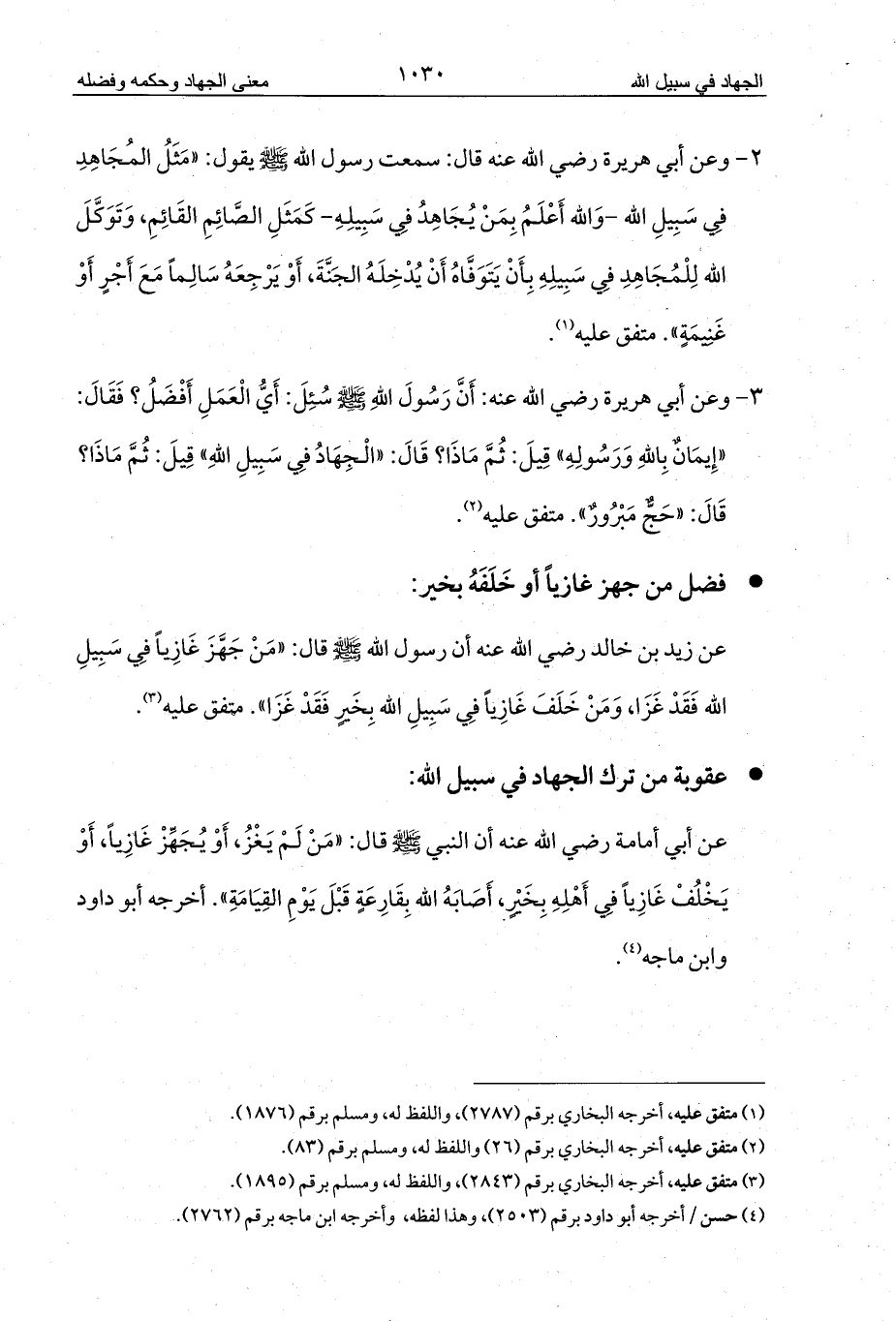 (¬3) متفق عليه، أخرجه البخاري برقم (2843)، واللفظ له، ومسلم برقم (1895).