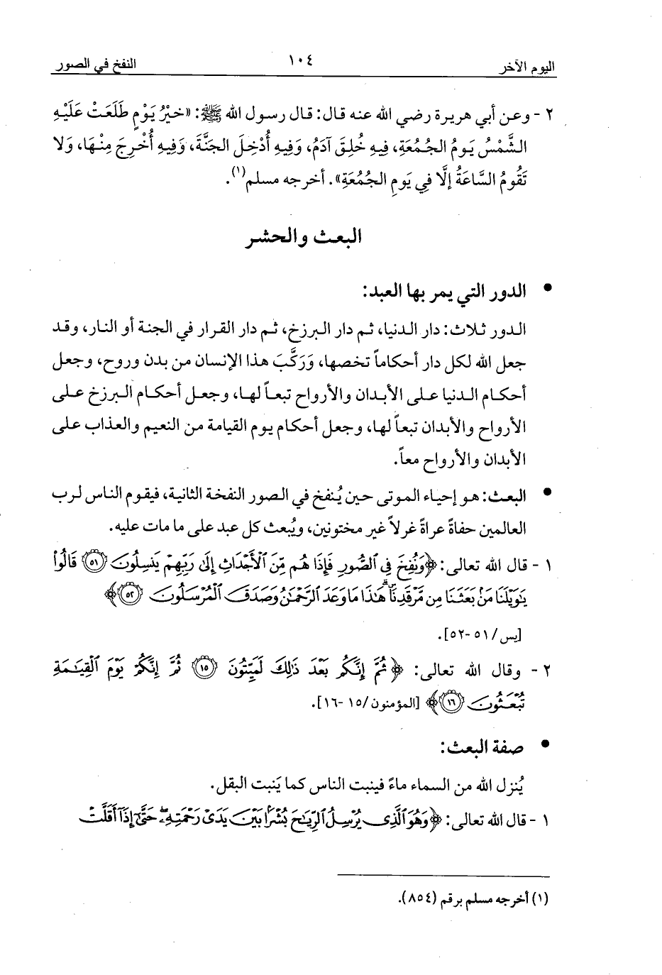 1 - قال الله تعالى: {وَنُفِخَ فِي الصُّورِ فَإِذَا هُمْ مِنَ الْأَجْدَاثِ إِلَى رَبِّهِمْ يَنْسِلُونَ (51) قَالُوا يَاوَيْلَنَا مَنْ بَعَثَنَا مِنْ مَرْقَدِنَا هَذَا مَا وَعَدَ الرَّحْمَنُ وَصَدَقَ الْمُرْسَلُونَ (52)}