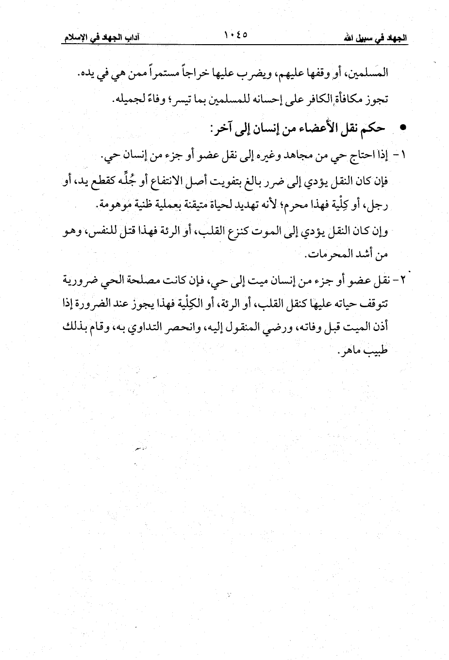 1 - إذا احتاج حي من مجاهد وغيره إلى نقل عضو أو جزء من إنسان حي.