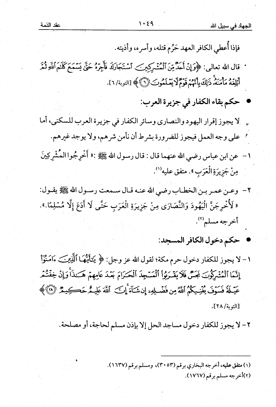 - حكم بقاء الكفار في جزيرة العرب: