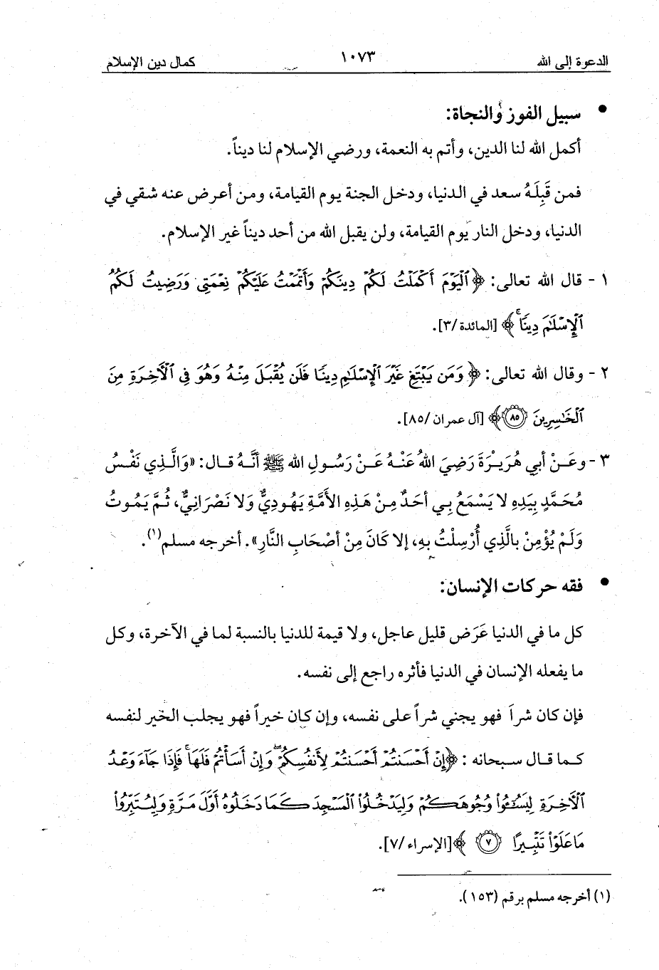 1 - قال الله تعالى: {الْيَوْمَ أَكْمَلْتُ لَكُمْ دِينَكُمْ وَأَتْمَمْتُ عَلَيْكُمْ نِعْمَتِي وَرَضِيتُ لَكُمُ الْإِسْلَامَ دِينًا} [المائدة/3].