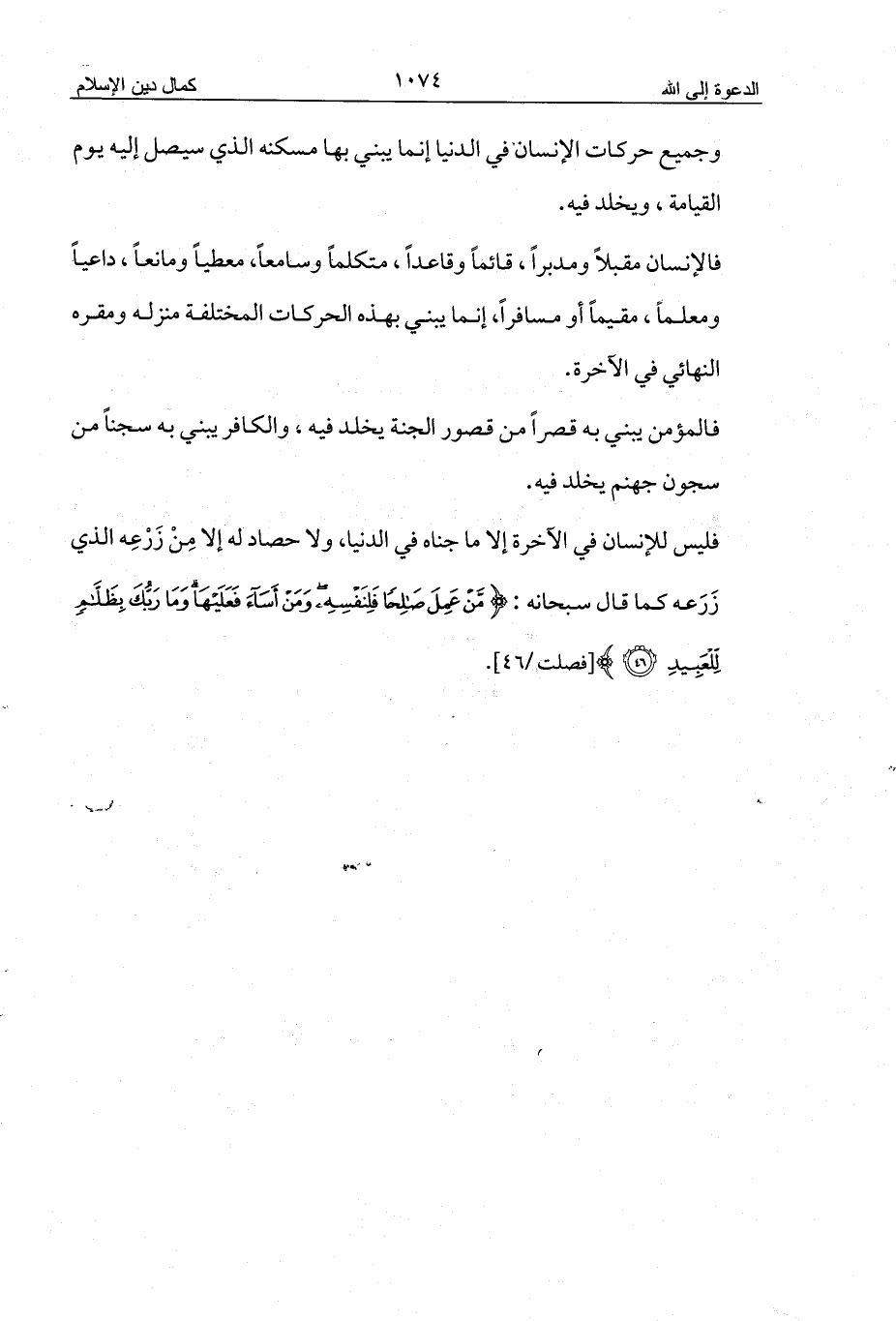 فالإنسان مقبلاً ومدبراً، قائماً وقاعداً، متكلماً وسامعاً، معطياً ومانعاً، داعياً ومعلماً، مقيماً أو مسافراً، إنما يبني بهذه الحركات المختلفة منزله ومقره النهائي في الآخرة.