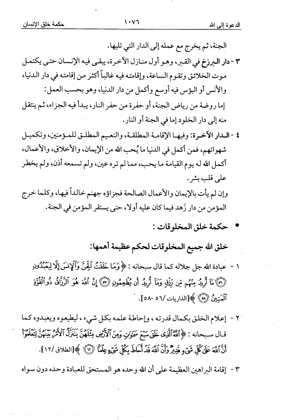 4 - الدار الآخرة: وفيها الإقامة المطلقة، والنعيم المطلق للمؤمنين، وتكميل شهواتهم، فمن أكمل في الدنيا ما يُحب الله من الإيمان، والأخلاق، والأعمال، أكمل الله له يوم القيامة ما يحب، مما لم تره عين، ولم تسمعه أذن، ولم يخطر على قلب بشر.