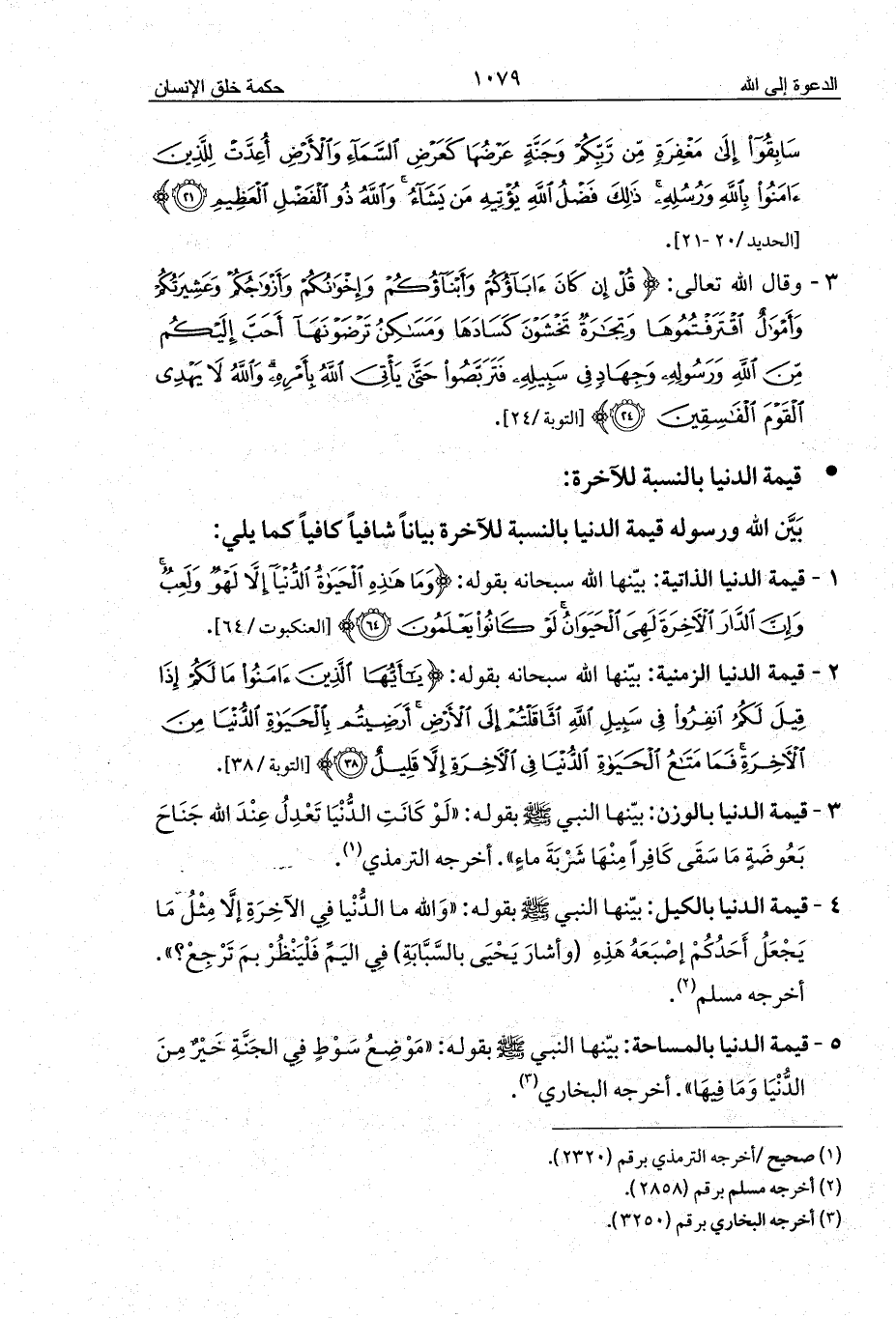 2 - قيمة الدنيا الزمنية: بيّنها الله سبحانه بقوله: {يَاأَيُّهَا الَّذِينَ آمَنُوا مَا لَكُمْ إِذَا قِيلَ لَكُمُ انْفِرُوا فِي سَبِيلِ اللَّهِ اثَّاقَلْتُمْ إِلَى الْأَرْضِ أَرَضِيتُمْ بِالْحَيَاةِ الدُّنْيَا مِنَ الْآخِرَةِ فَمَا مَتَاعُ الْحَيَاةِ الدُّنْيَا فِي الْآخِرَةِ إِلَّا قَلِيلٌ (38)} [التوبة/ 38].