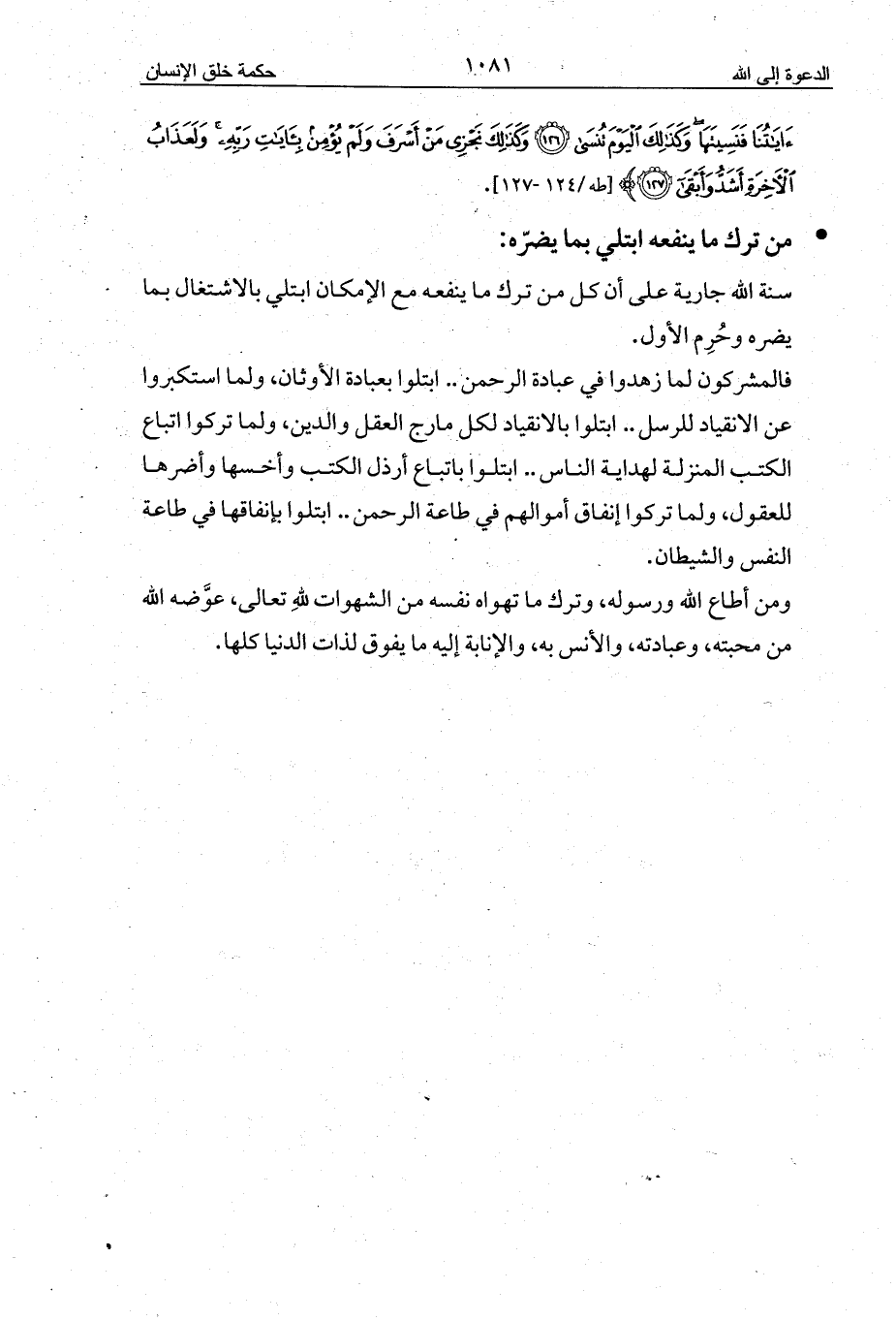 سنة الله جارية على أن كل من ترك ما ينفعه مع الإمكان ابتلي بالاشتغال بما يضره وحُرِم الأول.