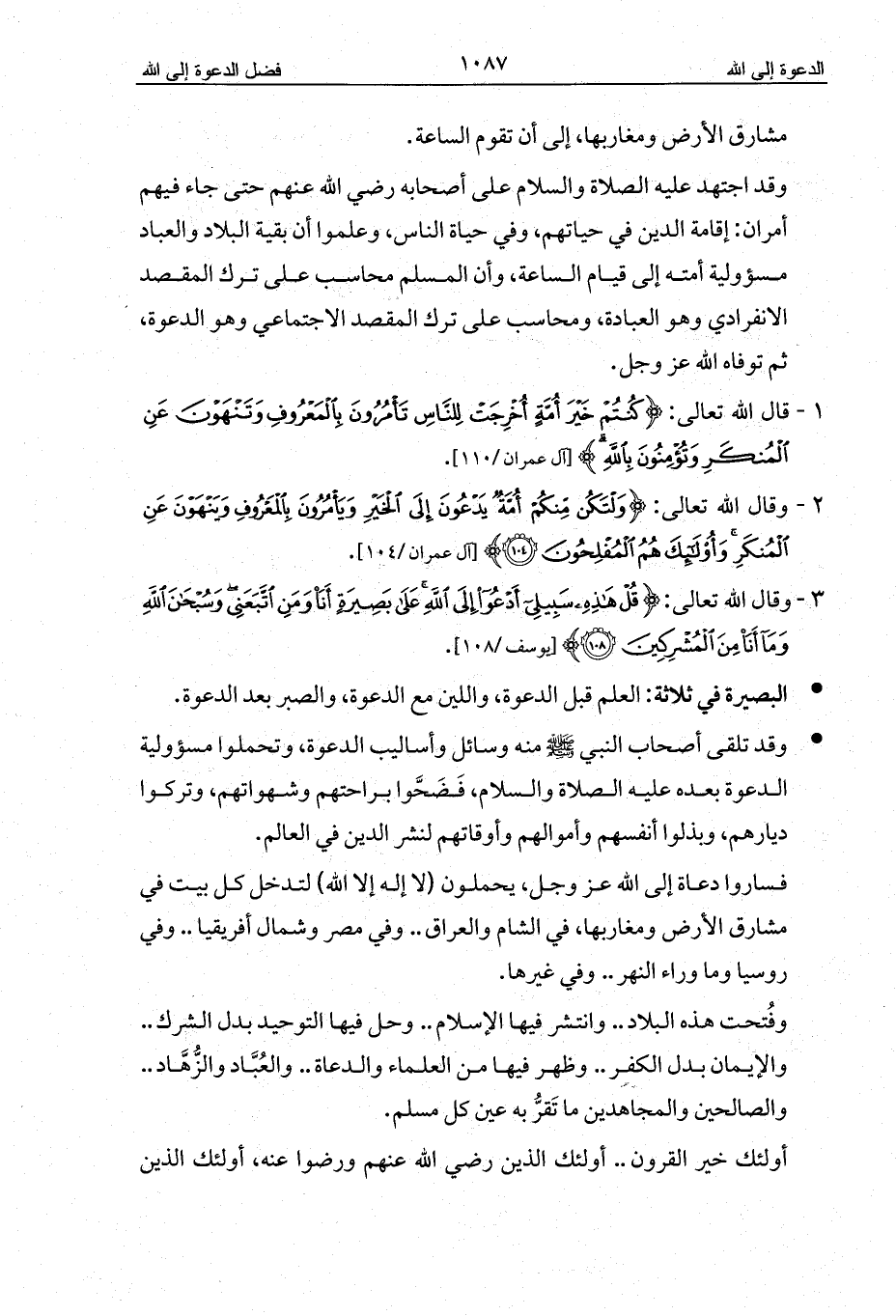 3 - وقال الله تعالى: {قُلْ هَذِهِ سَبِيلِي أَدْعُو إِلَى اللَّهِ عَلَى بَصِيرَةٍ أَنَا وَمَنِ اتَّبَعَنِي وَسُبْحَانَ اللَّهِ وَمَا أَنَا مِنَ الْمُشْرِكِينَ (108)} [يوسف/108].