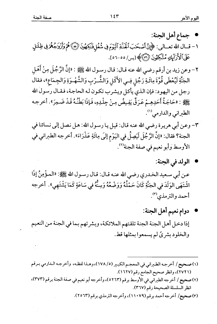 1 - قال الله تعالى: {إِنَّ أَصْحَابَ الْجَنَّةِ الْيَوْمَ فِي شُغُلٍ فَاكِهُونَ (55) هُمْ وَأَزْوَاجُهُمْ فِي ظِلَالٍ عَلَى الْأَرَائِكِ مُتَّكِئُونَ (56)} [يس/55 - 56].