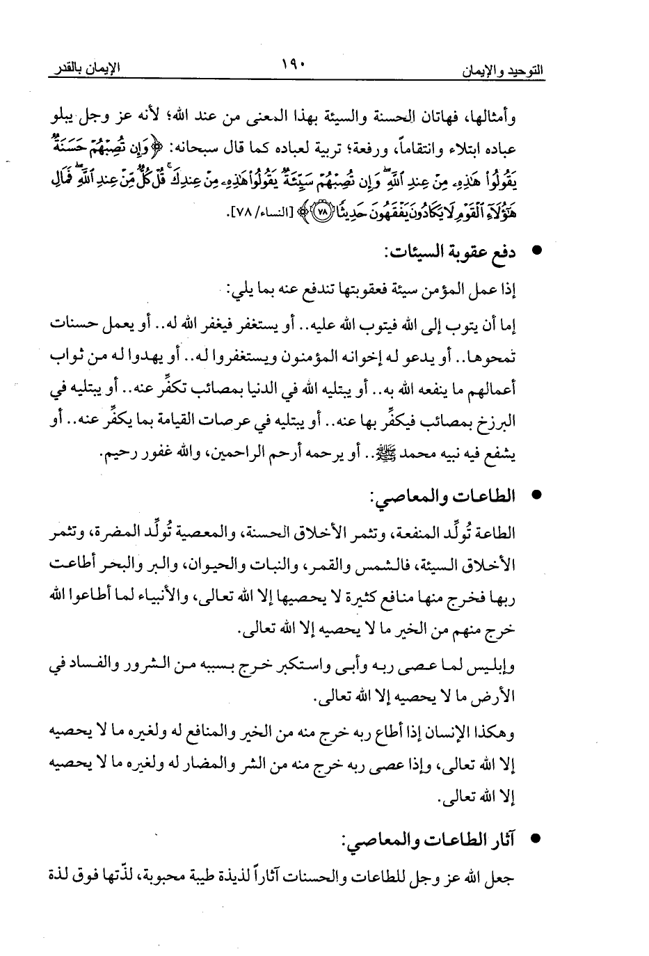 وأمثالها، فهاتان الحسنة والسيئة بهذا المعنى من عند الله؛ لأنه عز وجل يبلو عباده ابتلاء وانتقاماً، ورفعة؛ تربية لعباده كما قال سبحانه: {وَإِنْ تُصِبْهُمْ حَسَنَةٌ يَقُولُوا هَذِهِ مِنْ عِنْدِ اللَّهِ وَإِنْ تُصِبْهُمْ سَيِّئَةٌ يَقُولُوا هَذِهِ مِنْ عِنْدِكَ قُلْ كُلٌّ مِنْ عِنْدِ اللَّهِ فَمَالِ هَؤُلَاءِ الْقَوْمِ لَا يَكَادُونَ يَفْقَهُونَ حَدِيثًا (78)} [النساء/78].