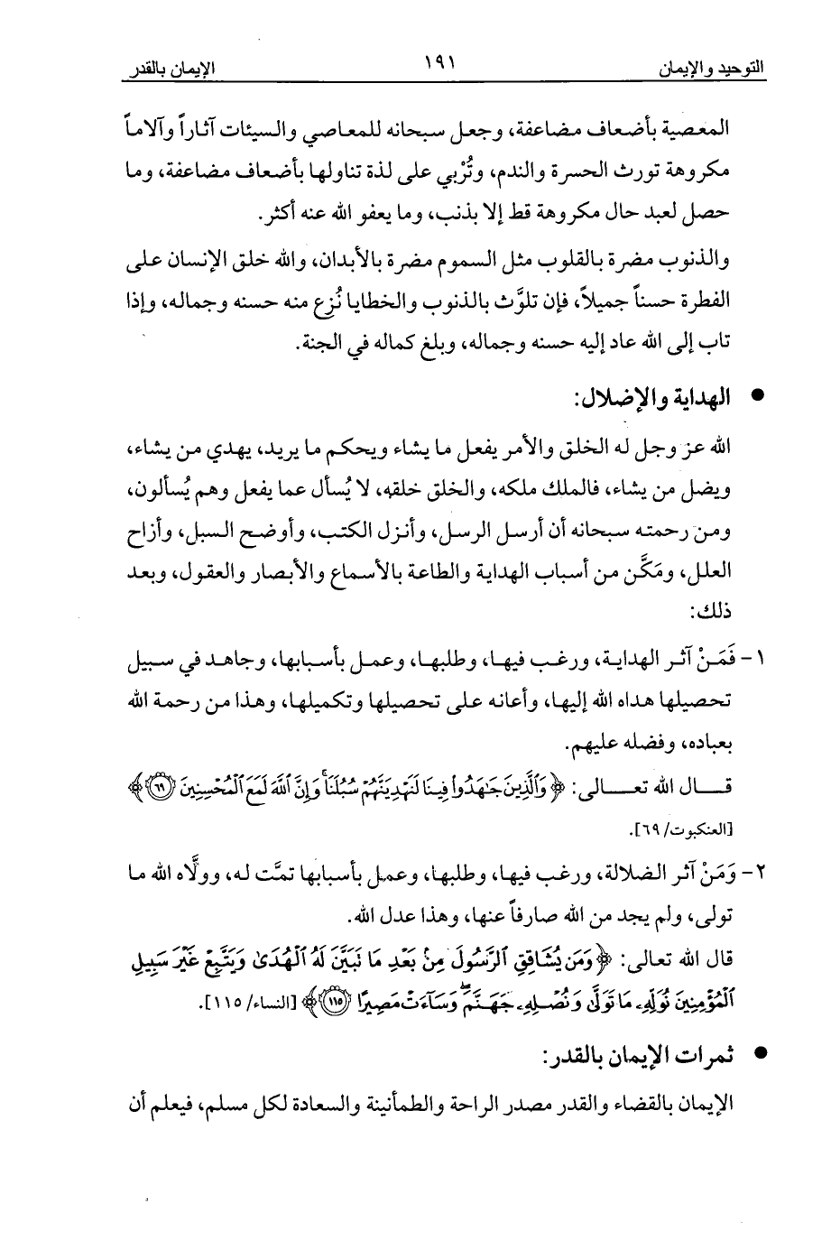 1 - فَمَنْ آثر الهداية، ورغب فيها، وطلبها، وعمل بأسبابها، وجاهد في سبيل تحصيلها هداه الله إليها، وأعانه على تحصيلها وتكميلها، وهذا من رحمة الله بعباده، وفضله عليهم.