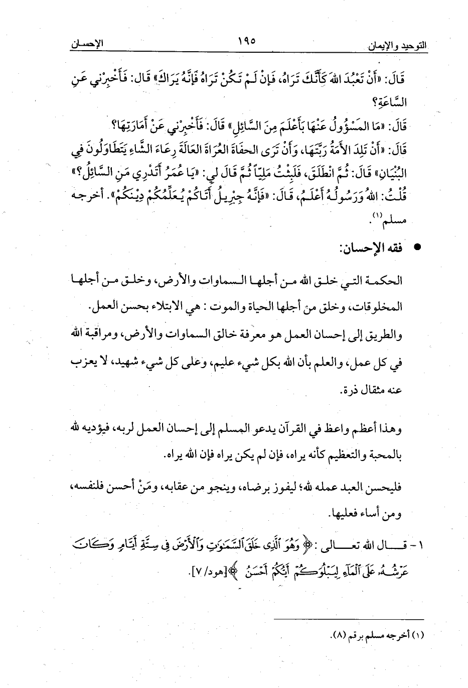 والطريق إلى إحسان العمل هو معرفة خالق السماوات والأرض، ومراقبة الله في كل عمل، والعلم بأن الله بكل شيء عليم، وعلى كل شيء شهيد، لا يعزب عنه مثقال ذرة.