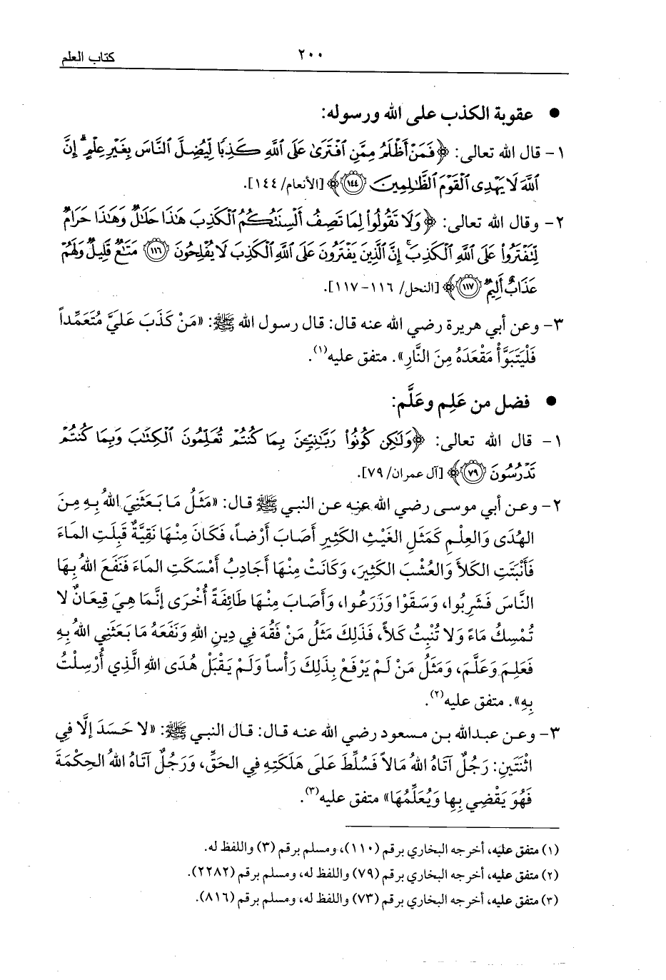 (¬3) متفق عليه، أخرجه البخاري برقم (73) واللفظ له، ومسلم برقم (816).