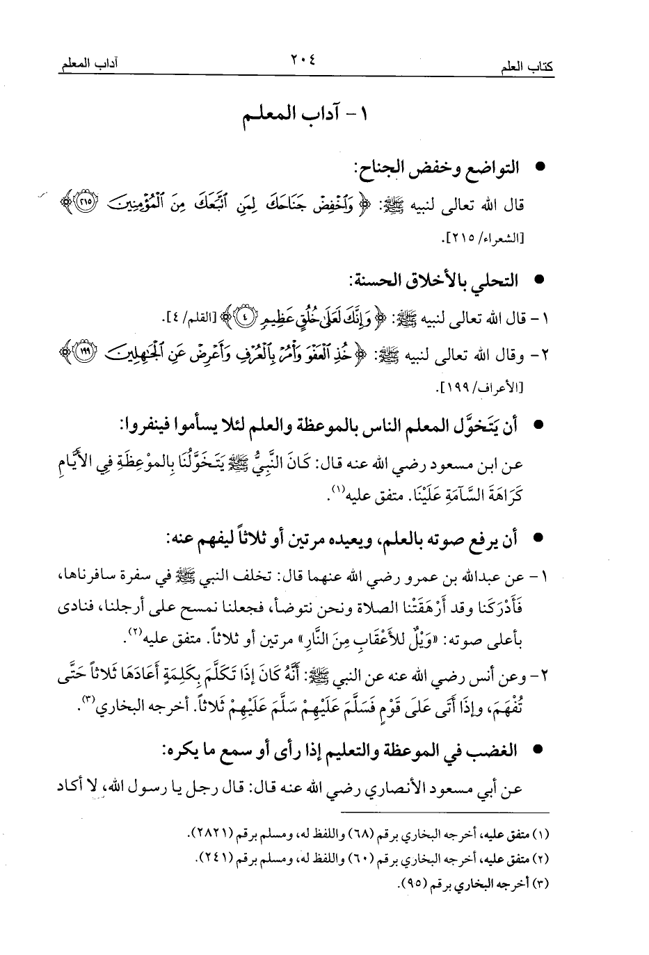 - أن يَتَخوَّل المعلم الناس بالموعظة والعلم لئلا يسأموا فينفروا: