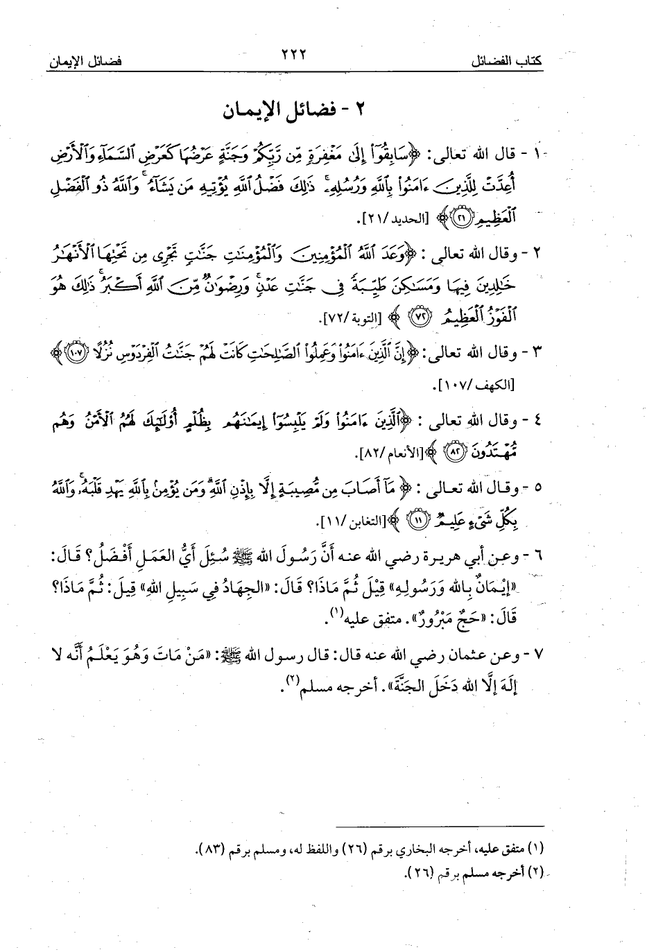 1 - قال الله تعالى: {سَابِقُوا إِلَى مَغْفِرَةٍ مِنْ رَبِّكُمْ وَجَنَّةٍ عَرْضُهَا كَعَرْضِ السَّمَاءِ وَالْأَرْضِ أُعِدَّتْ لِلَّذِينَ آمَنُوا بِاللَّهِ وَرُسُلِهِ ذَلِكَ فَضْلُ اللَّهِ يُؤْتِيهِ مَنْ يَشَاءُ وَاللَّهُ ذُو الْفَضْلِ الْعَظِيمِ (21)} ... [الحديد/21].