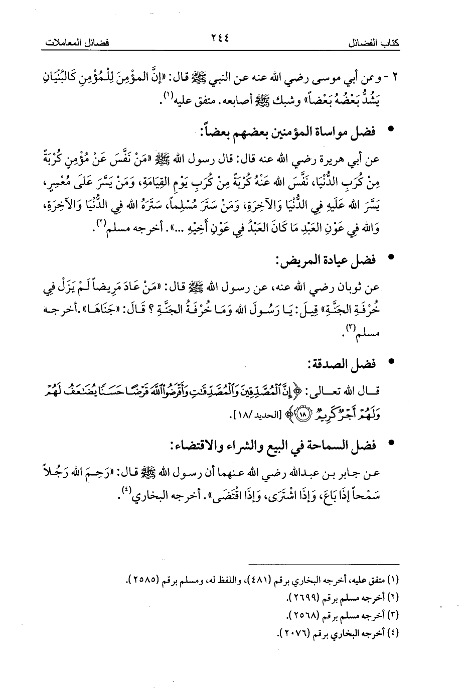 - فضل مواساة المؤمنين بعضهم بعضاً: