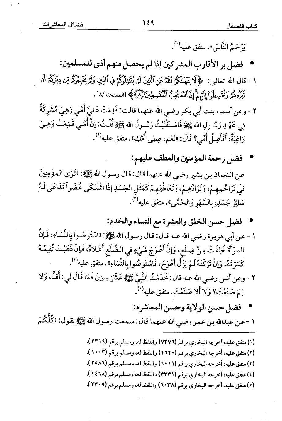 - فضل حسن الخلق والعشرة مع النساء والخدم: