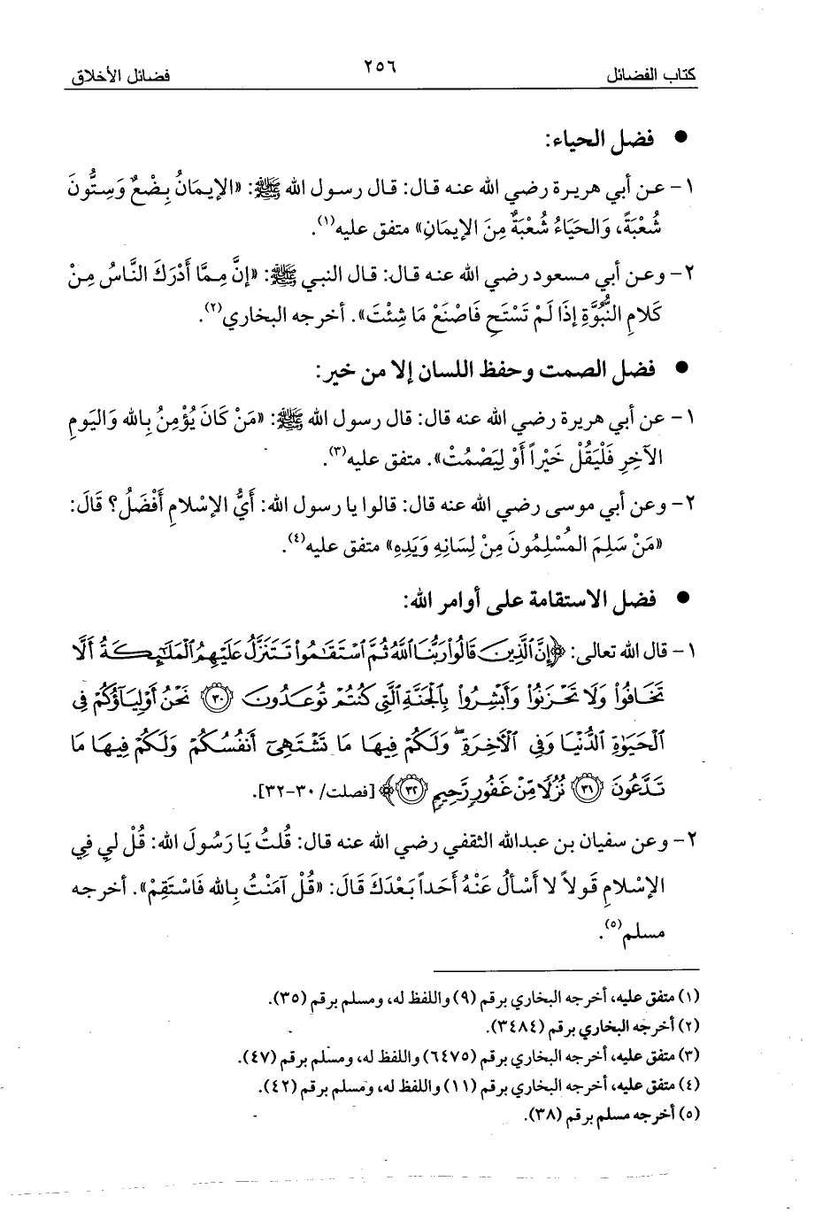1 - عن أبي هريرة رضي الله عنه قال: قال رسول الله - صلى الله عليه وسلم -: «الإيمَانُ بِضْعٌ وَسِتُّونَ شُعْبَةً، وَالحَيَاءُ شُعْبَةٌ مِنَ الإيمَانِ» متفق عليه (¬1).