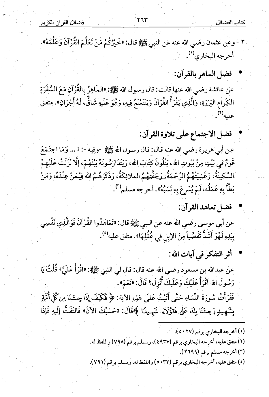 2 - وعن عثمان رضي الله عنه عن النبي - صلى الله عليه وسلم - قال: «خَيْرُكُمْ مَنْ تَعَلَّمَ القُرْآنَ وَعَلَّمَهُ». أخرجه البخاري (¬1).