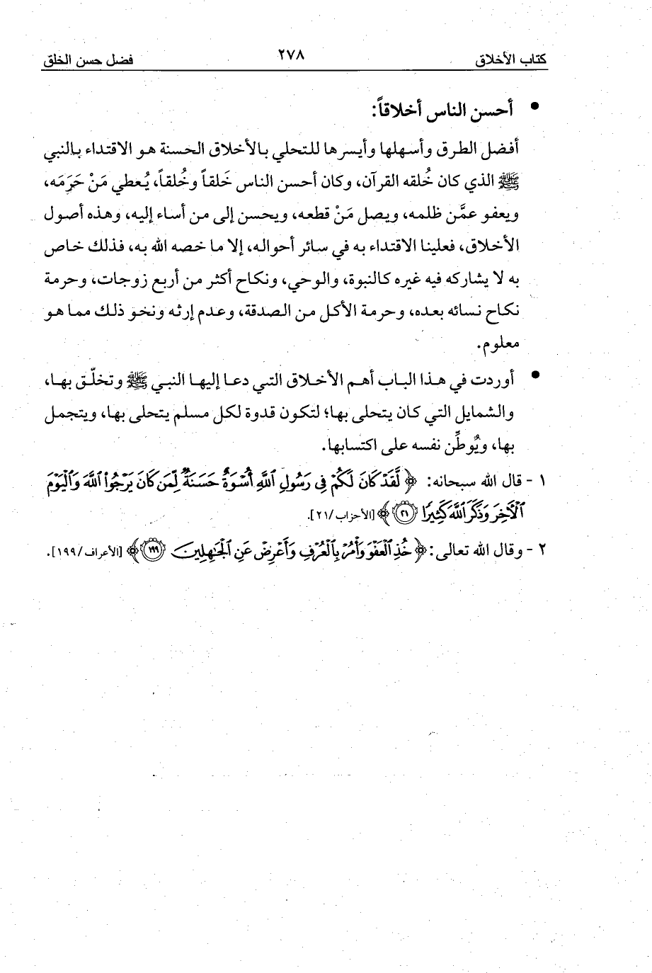 - أوردت في هذا الباب أهم الأخلاق التي دعا إليها النبي - صلى الله عليه وسلم - وتخلّق بها، والشمايل التي كان يتحلى بها؛ لتكون قدوة لكل مسلم يتحلى بها، ويتجمل بها، ويُوطِّن نفسه على اكتسابها.