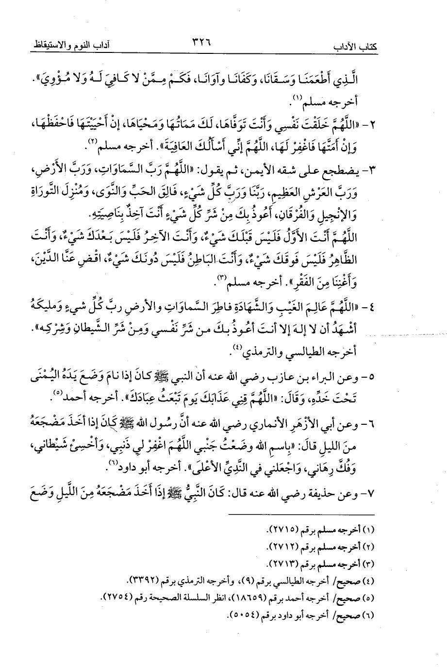 7 - وعن حذيفة رضي الله عنه قال: كَانَ النَّبِيُّ - صلى الله عليه وسلم - إذَا أَخَذَ مَضْجَعَهُ مِنَ اللَّيلِ وَضَعَ