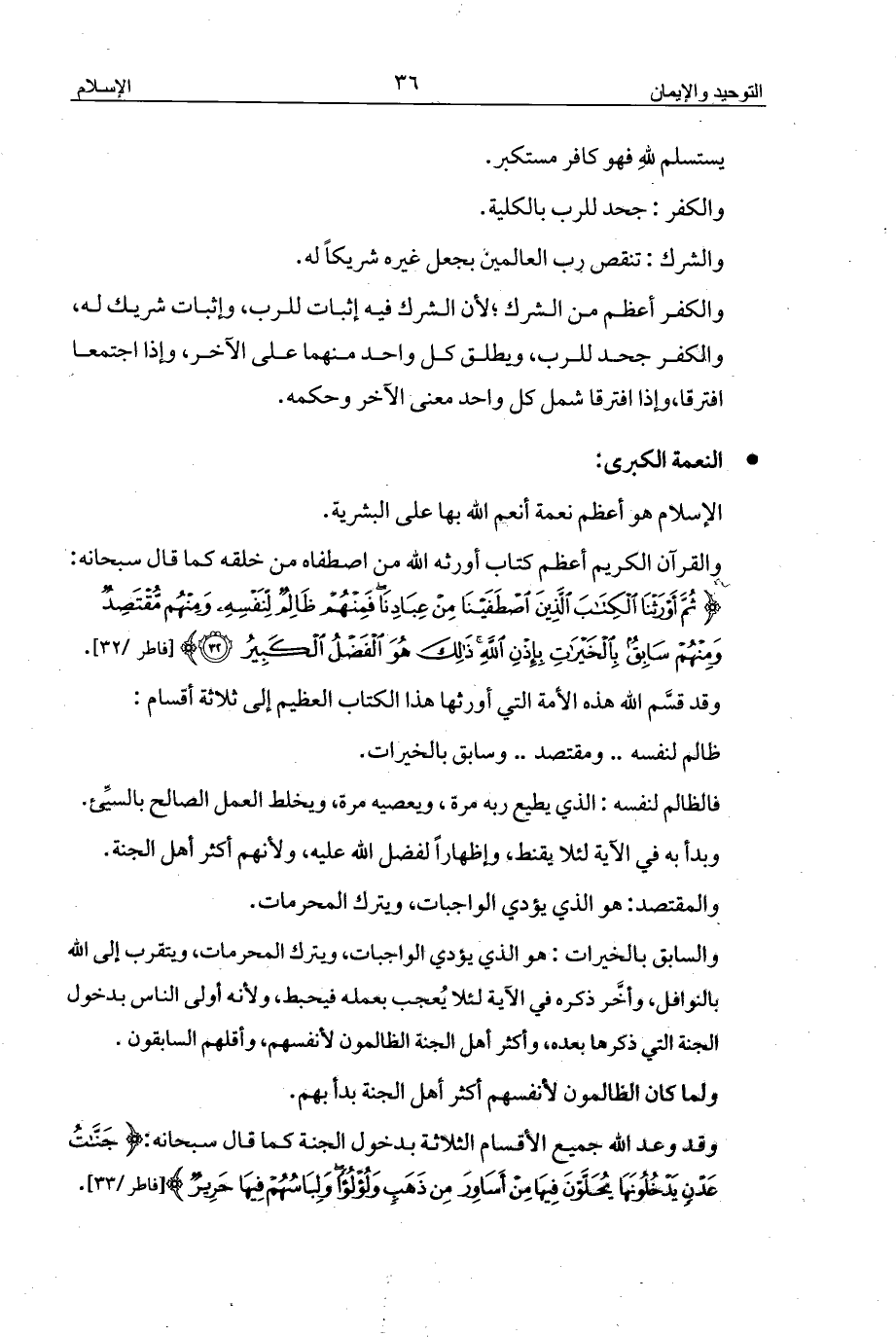 وقد قسَّم الله هذه الأمة التي أورثها هذا الكتاب العظيم إلى ثلاثة أقسام: