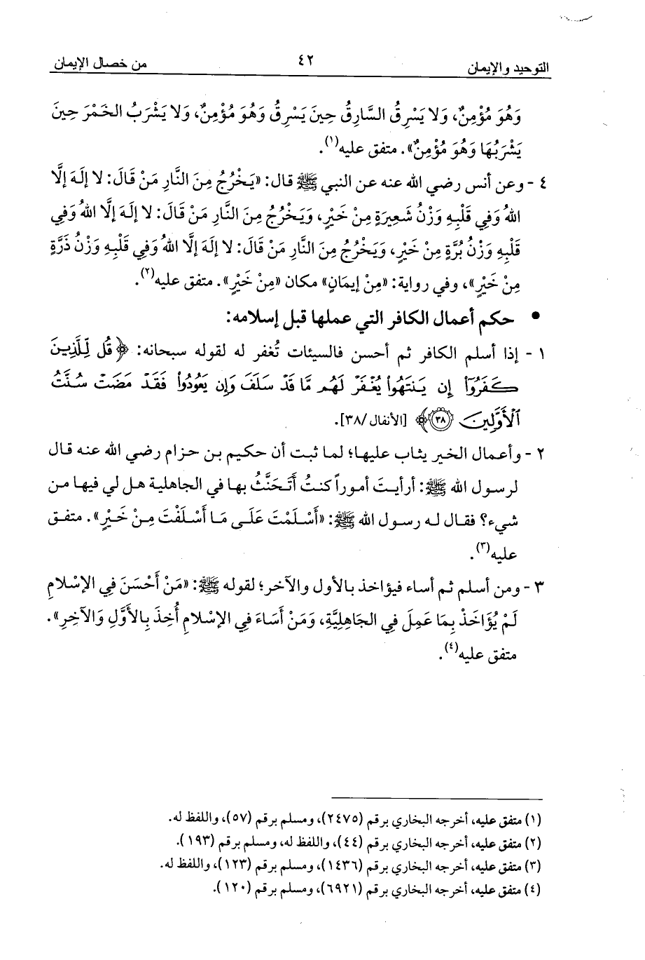 (¬4) متفق عليه، أخرجه البخاري برقم (6921)، ومسلم برقم (120).