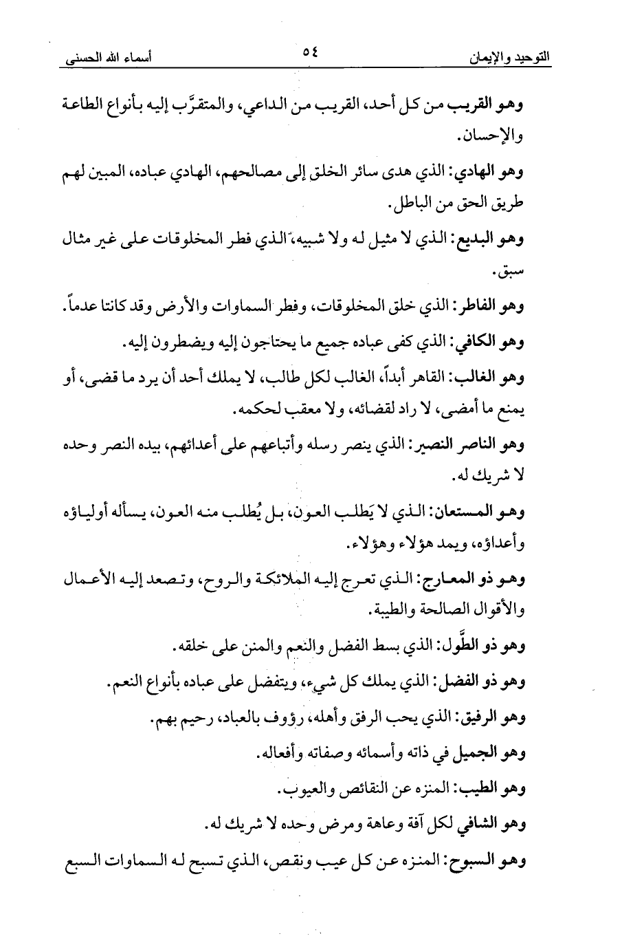 وهو البديع: الذي لا مثيل له ولا شبيه، الذي فطر المخلوقات على غير مثال سبق.