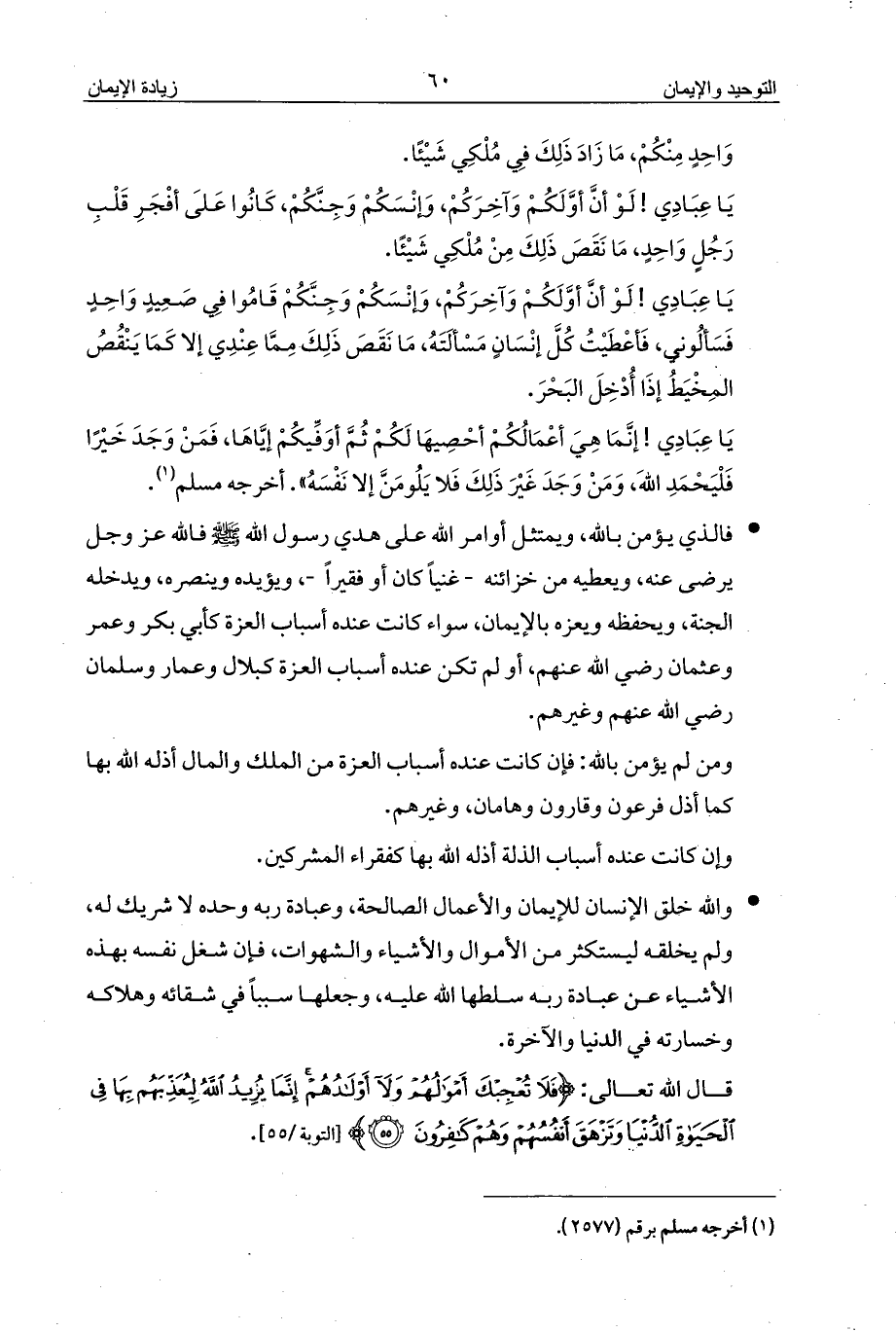 يَا عِبَادِي! لَوْ أنَّ أوَّلَكُمْ وَآخِرَكُمْ، وَإنْسَكُمْ وَجِنَّكُمْ، كَانُوا عَلَى أفْجَرِ قَلْبِ رَجُلٍ وَاحِدٍ، مَا نَقَصَ ذَلِكَ مِنْ مُلْكِي شَيْئًا.