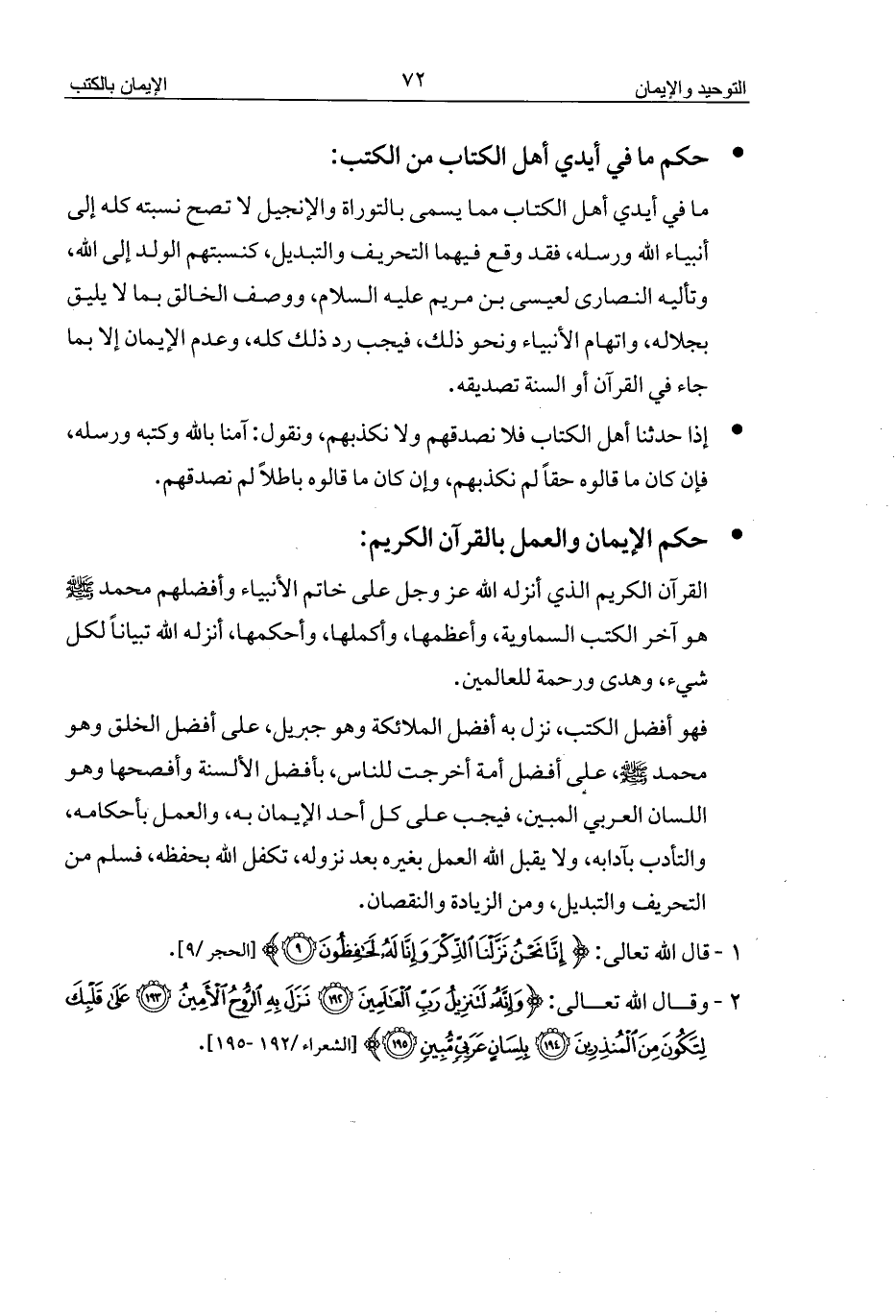 - حكم الإيمان والعمل بالقرآن الكريم: