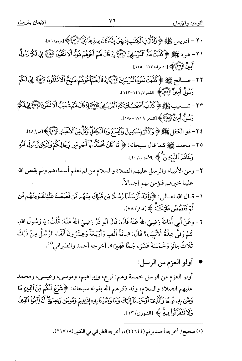 1 - قال الله تعالى: {وَلَقَدْ أَرْسَلْنَا رُسُلًا مِنْ قَبْلِكَ مِنْهُمْ مَنْ قَصَصْنَا عَلَيْكَ وَمِنْهُمْ مَنْ لَمْ نَقْصُصْ عَلَيْكَ} [غافر/78].