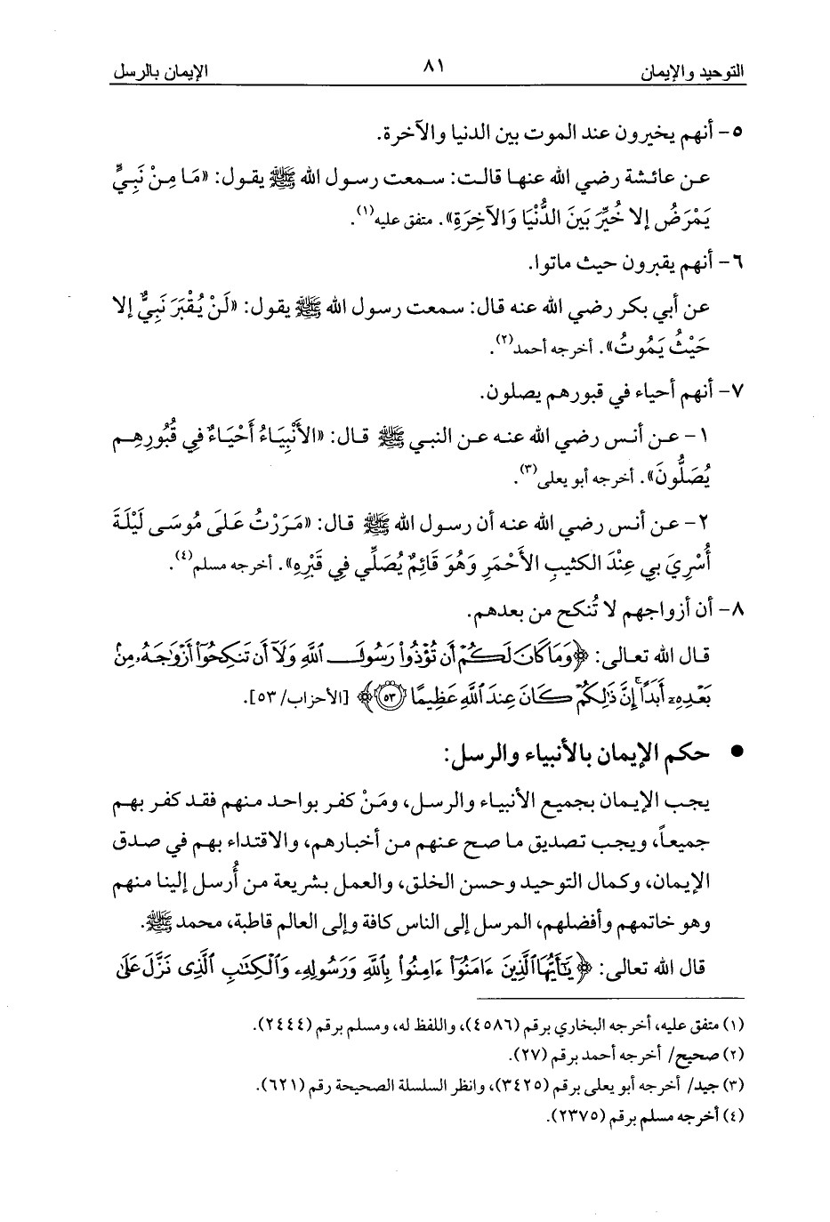 1 - عن أنس رضي الله عنه عن النبي - صلى الله عليه وسلم - قال: «الأَنْبِيَاءُ أَحْيَاءٌ فِي قُبُورِهِم يُصَلُّونَ». أخرجه أبو يعلى (¬3).