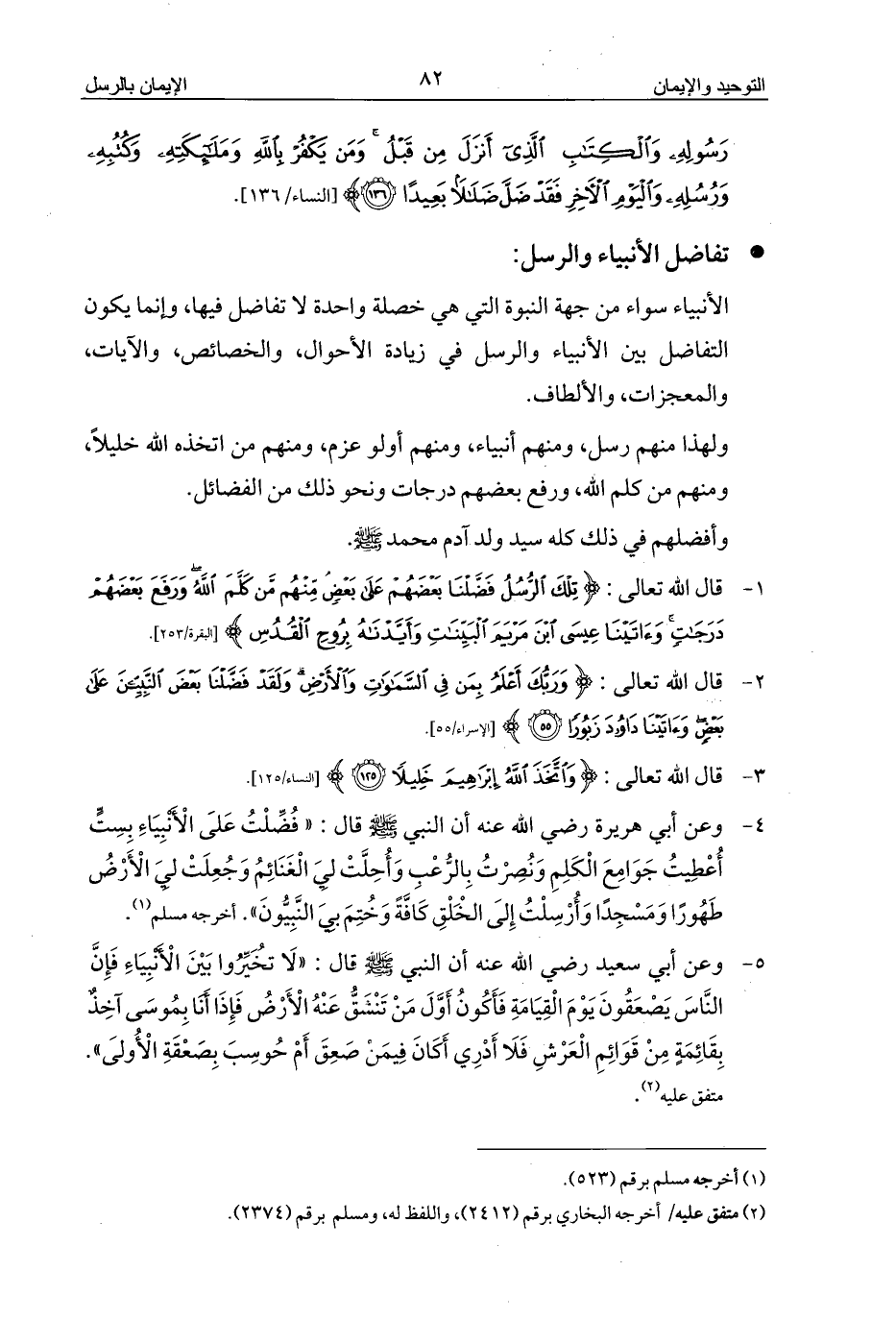 1 - قال الله تعالى: {تِلْكَ الرُّسُلُ فَضَّلْنَا بَعْضَهُمْ عَلَى بَعْضٍ مِنْهُمْ مَنْ كَلَّمَ اللَّهُ وَرَفَعَ بَعْضَهُمْ دَرَجَاتٍ وَآتَيْنَا عِيسَى ابْنَ مَرْيَمَ الْبَيِّنَاتِ وَأَيَّدْنَاهُ بِرُوحِ الْقُدُسِ} [البقرة/253].