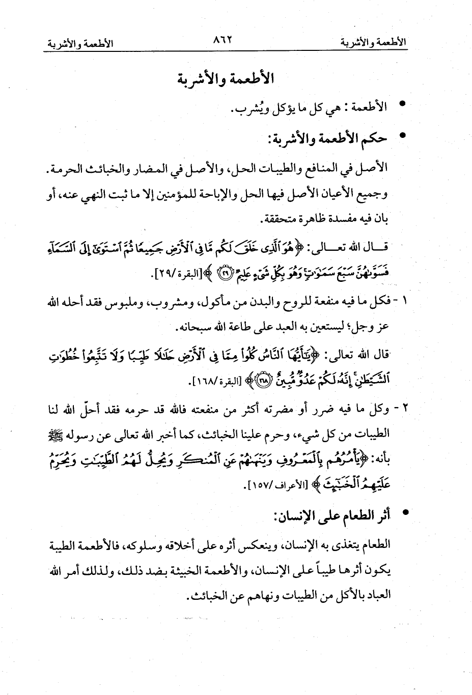 - حكم الأطعمة والأشربة: