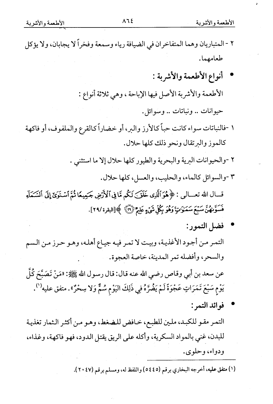 الأطعمة والأشربة الأصل فيها الإباحة، وهي ثلاثة أنواع: