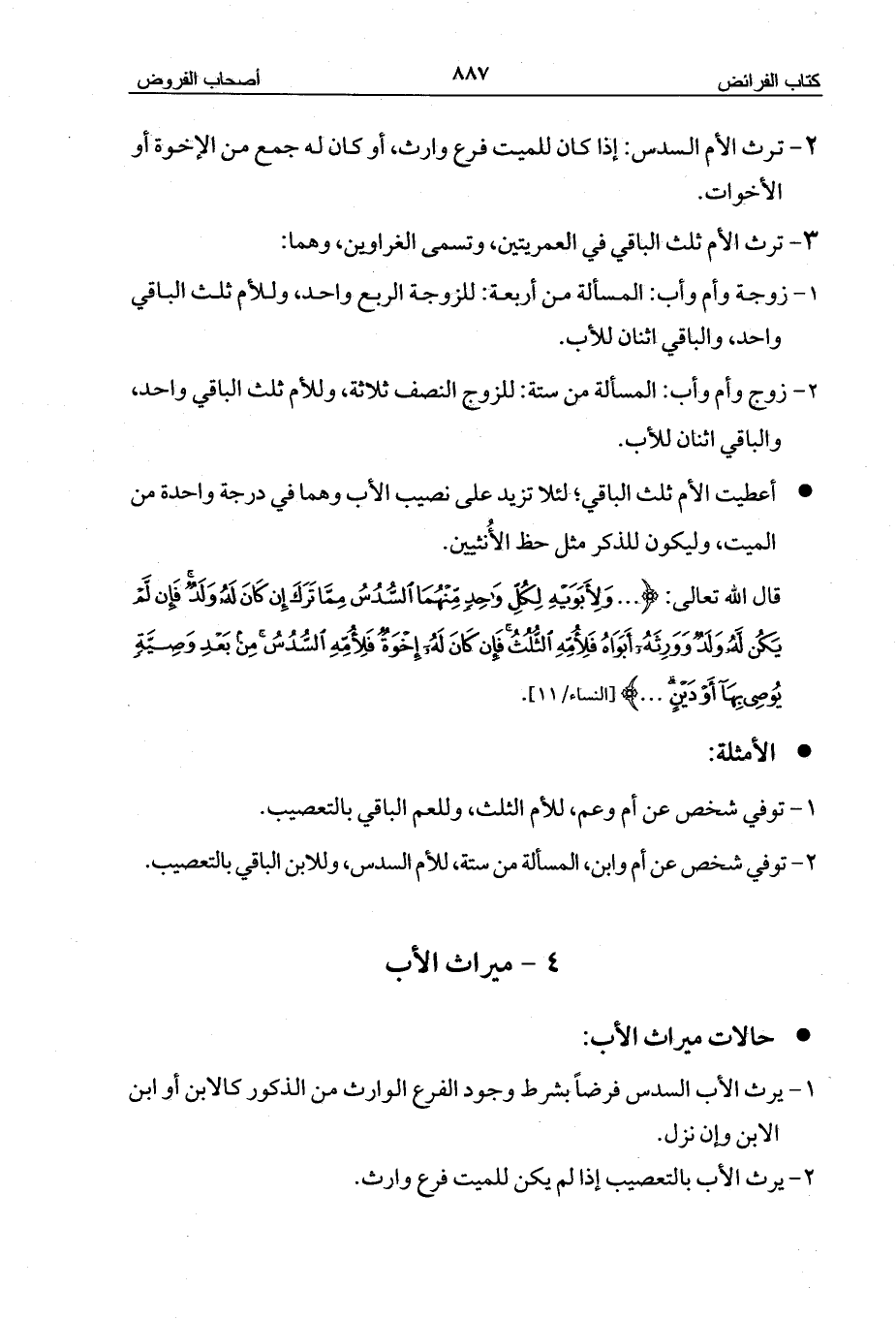 قال الله تعالى: { ... وَلِأَبَوَيْهِ لِكُلِّ وَاحِدٍ مِنْهُمَا السُّدُسُ مِمَّا تَرَكَ إِنْ كَانَ لَهُ وَلَدٌ فَإِنْ لَمْ يَكُنْ لَهُ وَلَدٌ وَوَرِثَهُ أَبَوَاهُ فَلِأُمِّهِ الثُّلُثُ فَإِنْ كَانَ لَهُ إِخْوَةٌ فَلِأُمِّهِ السُّدُسُ مِنْ بَعْدِ وَصِيَّةٍ يُوصِي بِهَا أَوْ دَيْنٍ ... } [النساء/11].