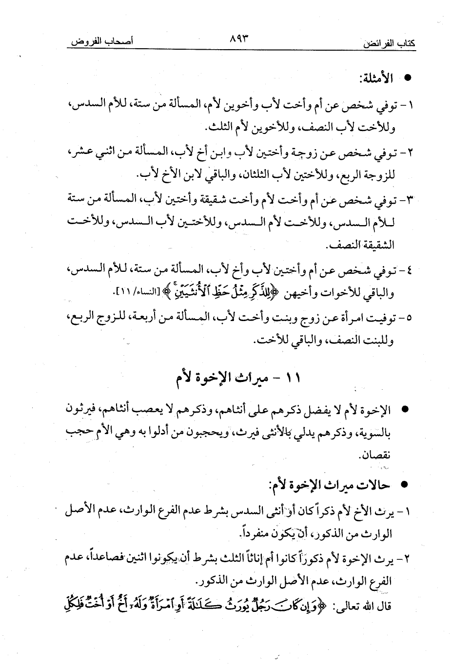 1 - توفي شخص عن أم وأخت لأب وأخوين لأم، المسألة من ستة، للأم السدس، وللأخت لأب النصف، وللأخوين لأم الثلث.