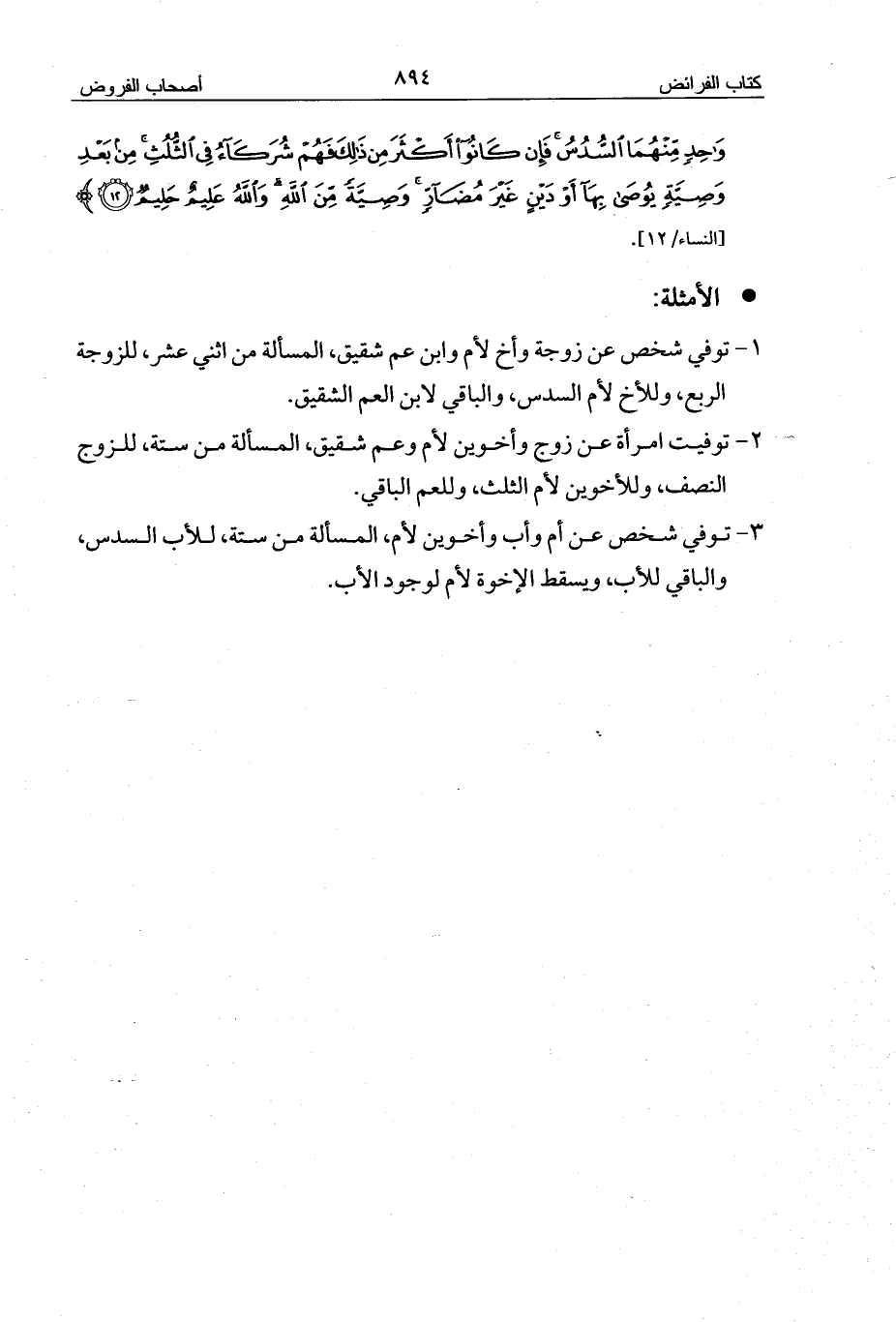 وَاحِدٍ مِنْهُمَا السُّدُسُ فَإِنْ كَانُوا أَكْثَرَ مِنْ ذَلِكَ فَهُمْ شُرَكَاءُ فِي الثُّلُثِ مِنْ بَعْدِ وَصِيَّةٍ يُوصَى بِهَا أَوْ دَيْنٍ غَيْرَ مُضَارٍّ وَصِيَّةً مِنَ اللَّهِ وَاللَّهُ عَلِيمٌ حَلِيمٌ (12)} [النساء/12].