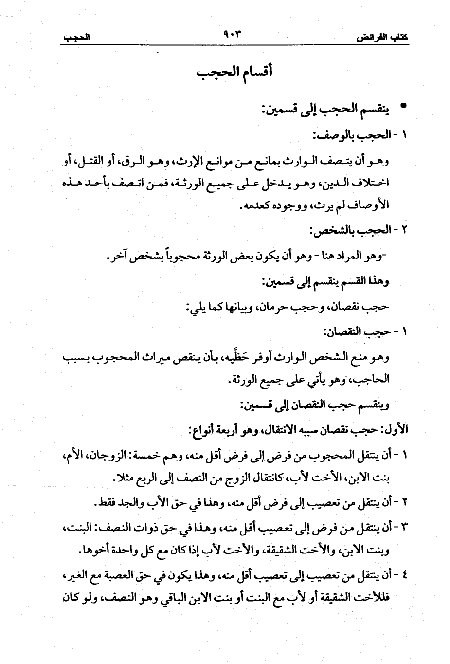 وينقسم حجب النقصان إلى قسمين: