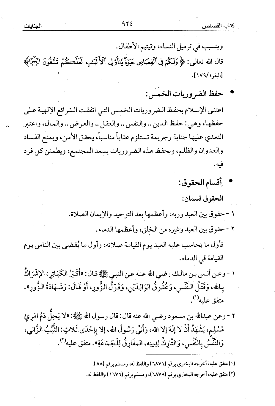 2 - حقوق بين العبد وغيره من الخلق، وأعظمها الدماء.