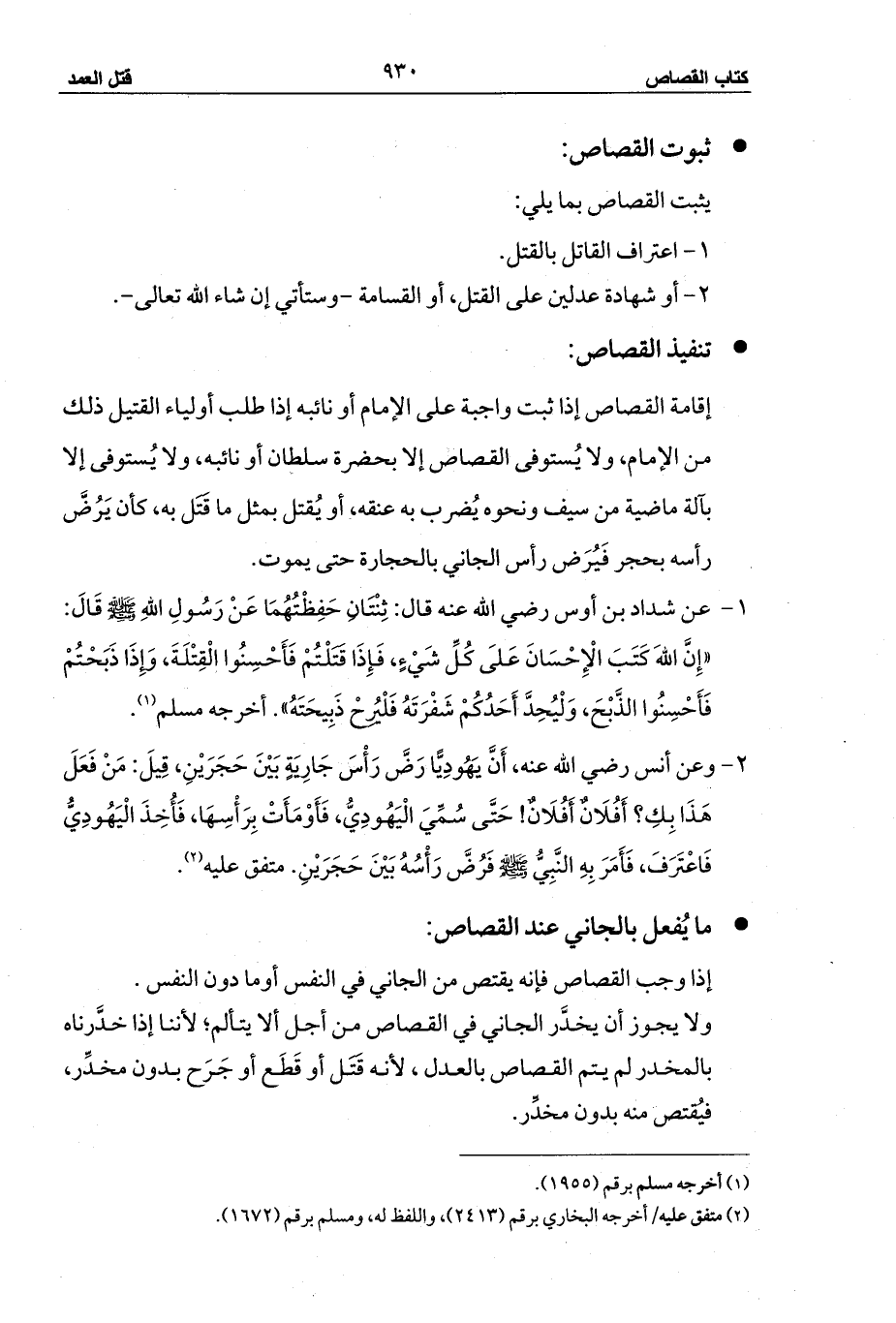 2 - وعن أنس رضي الله عنه، أَنَّ يَهُودِيًّا رَضَّ رَأْسَ جَارِيَةٍ بَيْنَ حَجَرَيْنِ، قِيلَ: مَنْ فَعَلَ هَذَا بِكِ؟ أَفُلَانٌ أَفُلَانٌ! حَتَّى سُمِّيَ الْيَهُودِيُّ، فَأَوْمَأَتْ بِرَأْسِهَا، فَأُخِذَ الْيَهُودِيُّ فَاعْتَرَفَ، فَأَمَرَ بِهِ النَّبِيُّ - صلى الله عليه وسلم - فَرُضَّ رَأْسُهُ بَيْنَ حَجَرَيْنِ. متفق عليه (¬2).