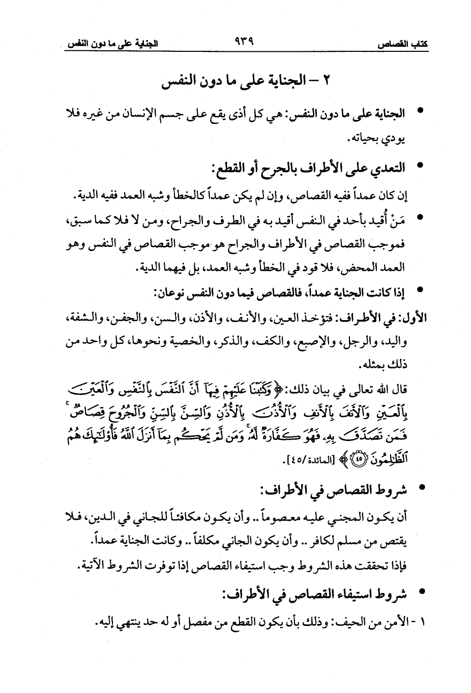 - شروط القصاص في الأطراف: