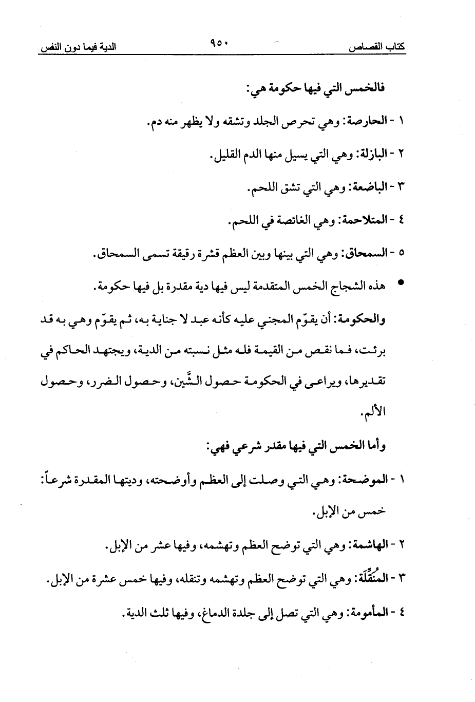 - هذه الشجاج الخمس المتقدمة ليس فيها دية مقدرة بل فيها حكومة.