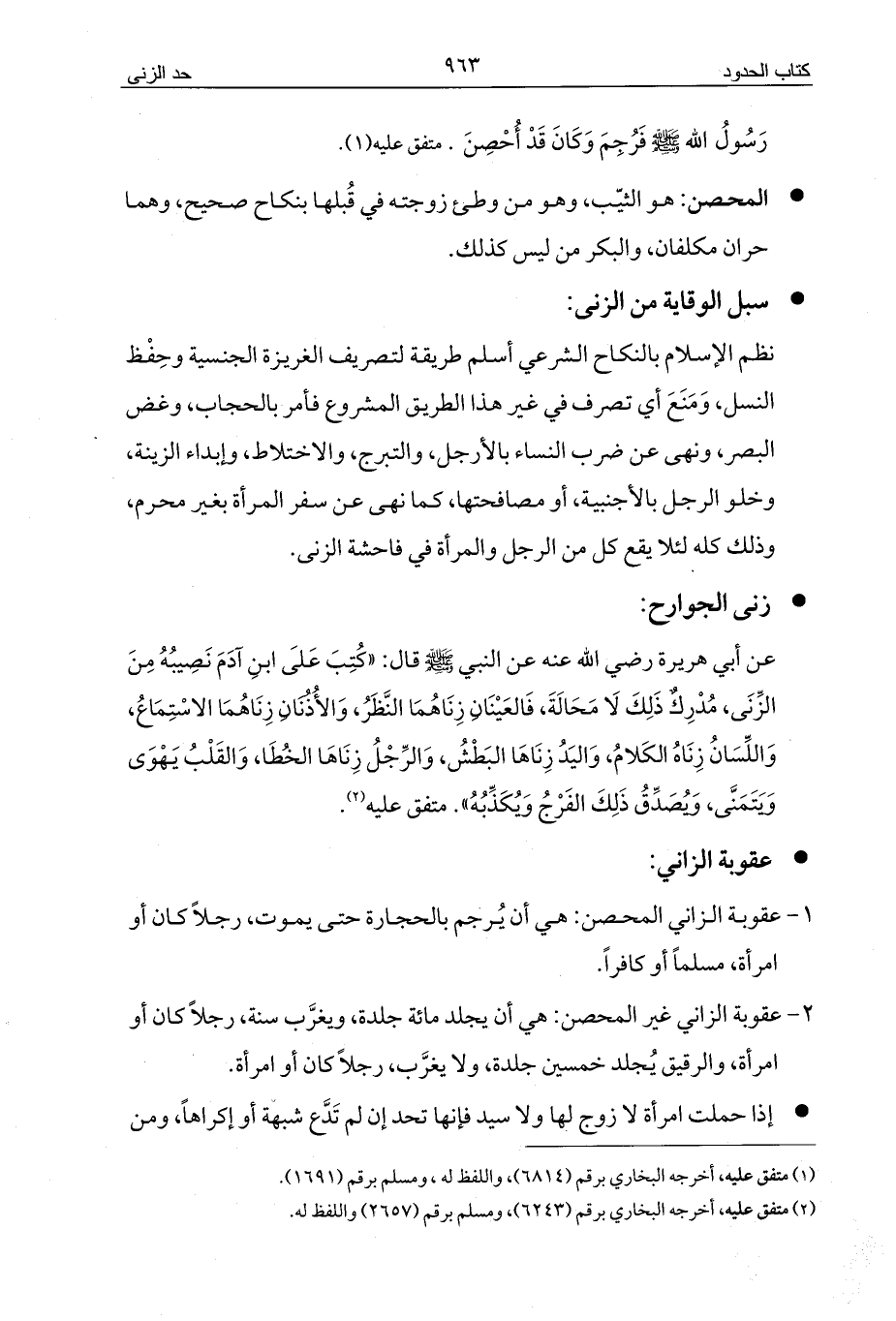 1 - عقوبة الزاني المحصن: هي أن يُرجم بالحجارة حتى يموت، رجلاً كان أو امرأة، مسلماً أو كافراً.