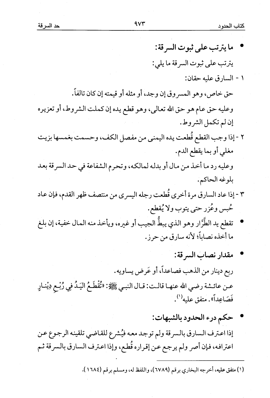 2 - إذا وجب القطع قُطعت يده اليمنى من مفصل الكف، وحسمت بغمسها بزيت مغلي أو بما يقطع الدم.