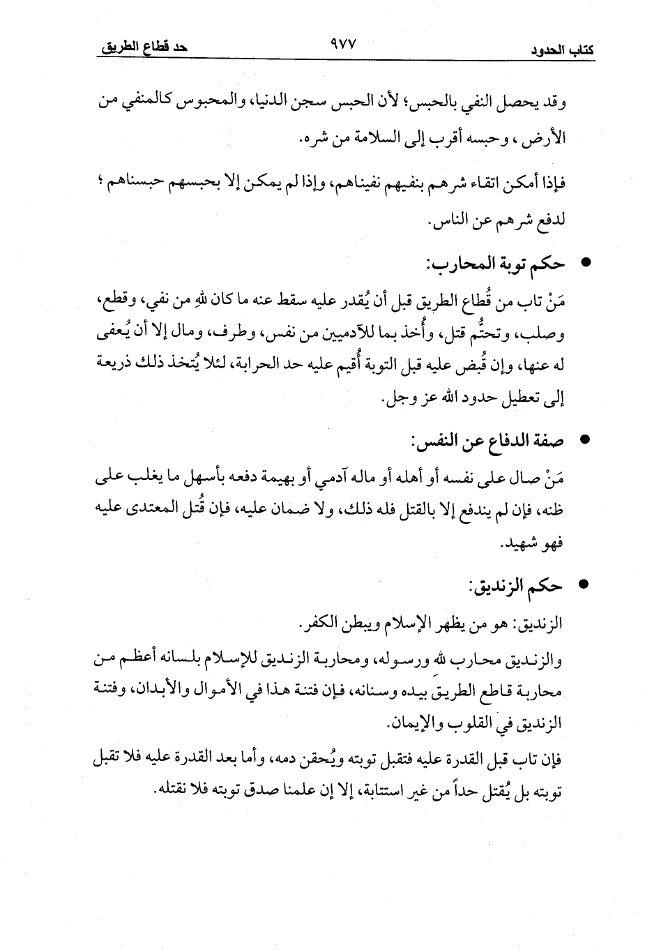 والزنديق محارب للهِ ورسوله، ومحاربة الزنديق للإسلام بلسانه أعظم من محاربة قاطع الطريق بيده وسنانه، فإن فتنة هذا في الأموال والأبدان، وفتنة الزنديق في القلوب والإيمان.